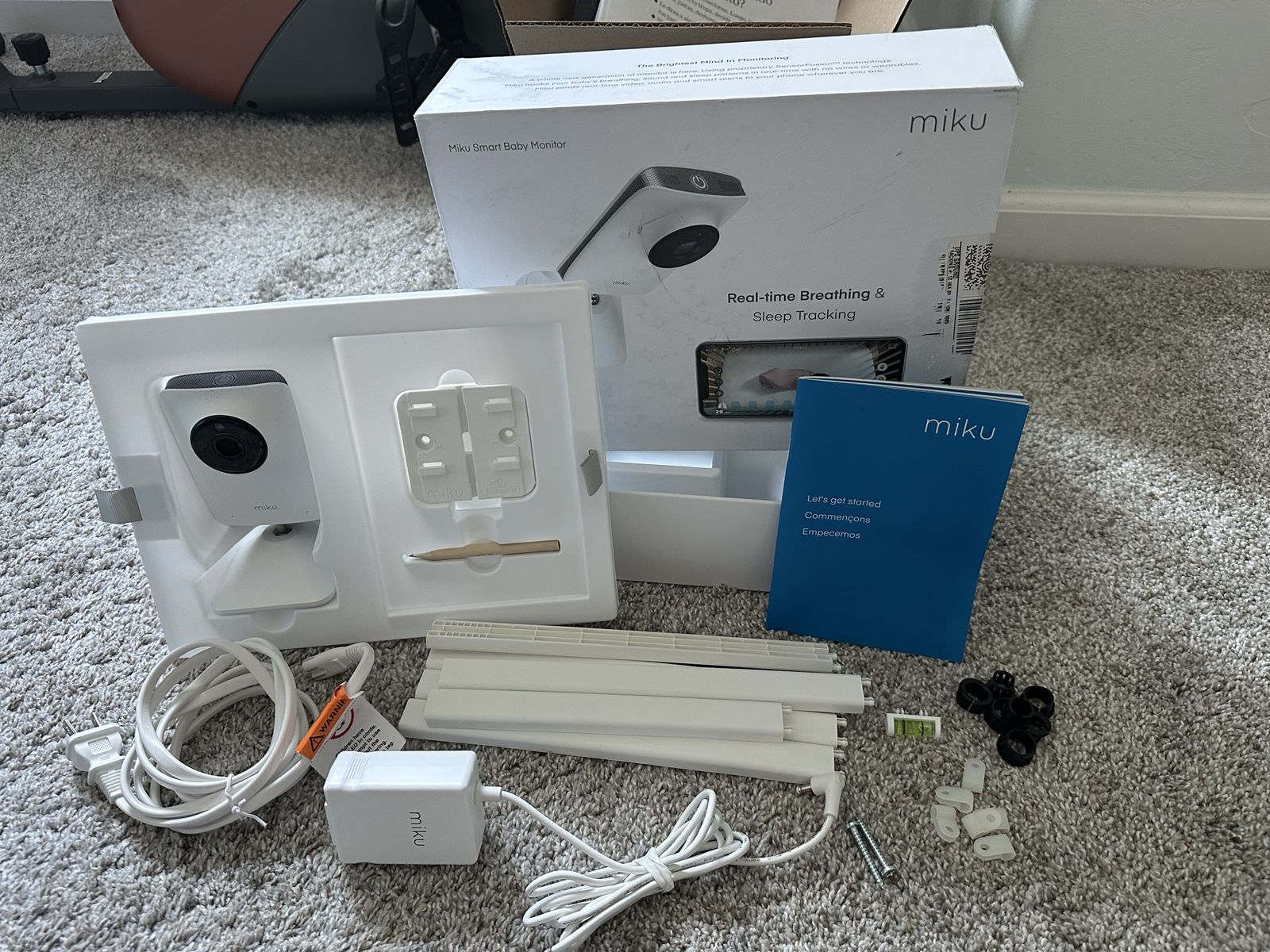 VenmoOriginal box and all parts. Even includes the wire covers for your wall because we never used them. You need to install it over the crib or bed for the breathing tracking to work.