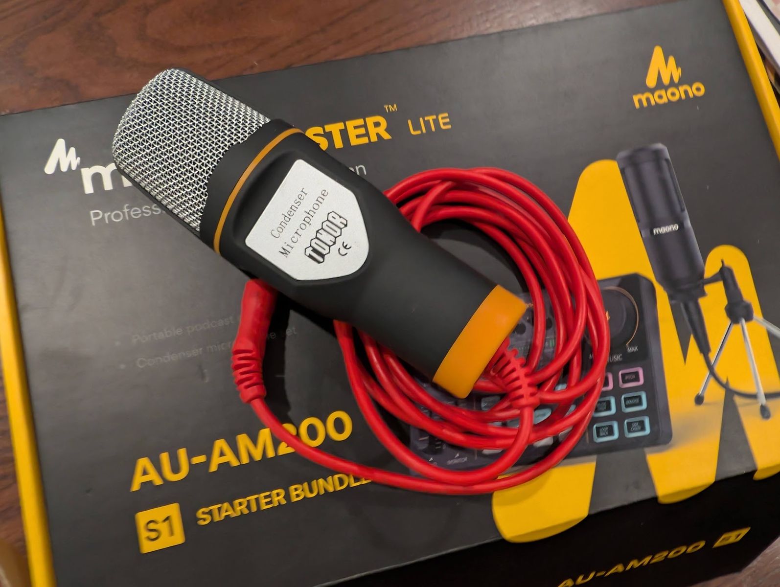 GooglePayGot in a bundle with some other items in a trade. Tested and working well. There is a random Tonor TRS mic included since the original maono mic is missing but the maonocaster itself is fully working and includes a long usb-c cable to plug in/charge it.