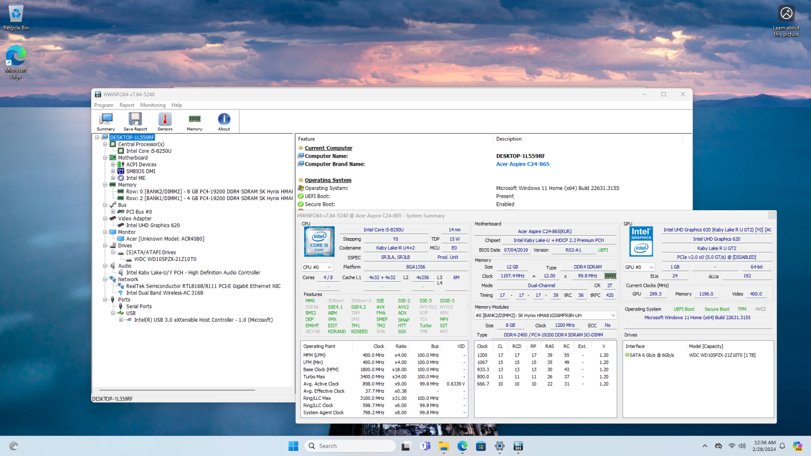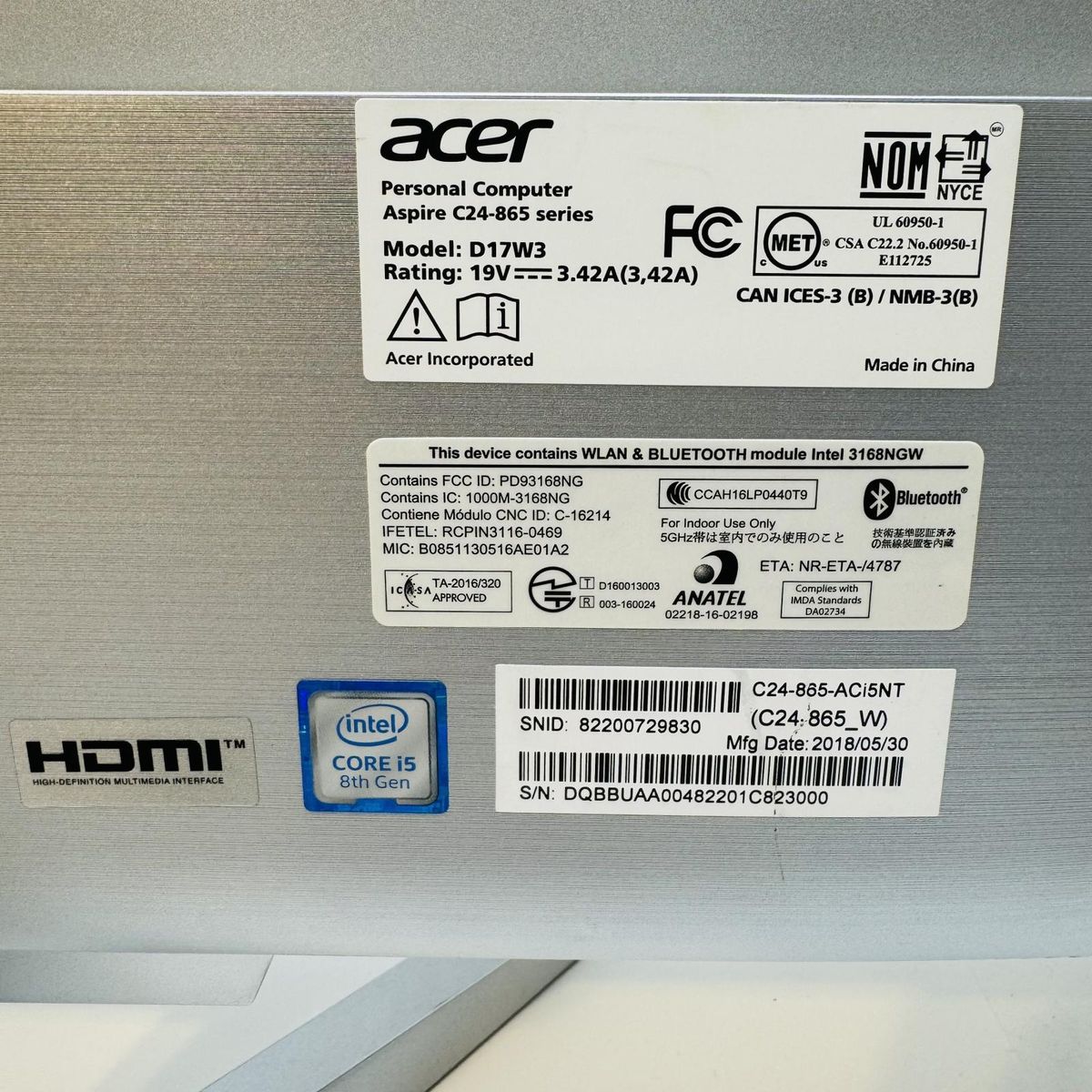 Streamline your workspace with the Acer Aspire C24-865, an elegant All-in-One desktop that combines a slim design with reliable everyday performance. Featuring a 23.8-inch Full HD borderless display, this PC offers crisp visuals and an impressive screen-to-body ratio, perfect for streaming, web browsing, and home office productivity. Powered by an Intel Core i5-8250U quad-core processor and 12GB of DDR4 RAM, it provides a smooth experience for multitasking and daily computing.