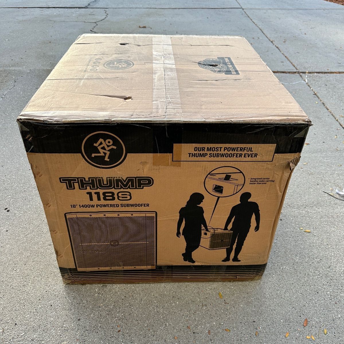 Elevate your sound system with the Mackie Thump118S 1,400-watt 18-inch Powered Subwoofer. Engineered for powerful, punchy bass, the Thump118S is ideal for DJs, live performers, and venues seeking deep, rich low-end enhancement. Its robust 1,400-watt Class D amplifier delivers tight, responsive bass ideal for professional PA and DJ setups. The 18-inch high-performance woofer ensures clarity and depth, while built-in stereo XLR inputs and outputs offer versatile connections for seamless integration with any sound system. Featuring three selectable crossover presets, the Thump118S adapts easily to different setups and room sizes. A rugged front grille and sturdy enclosure protect the subwoofer during transport and touring. The compact yet highly durable design simplifies setup and mobility, making it perfect for events on the go. Experience deep bass, reliable performance, and true flexibility—choose the Mackie Thump118S for the best in live audio. Buy now to transform your event’s sound with industry-leading low-frequency power!
