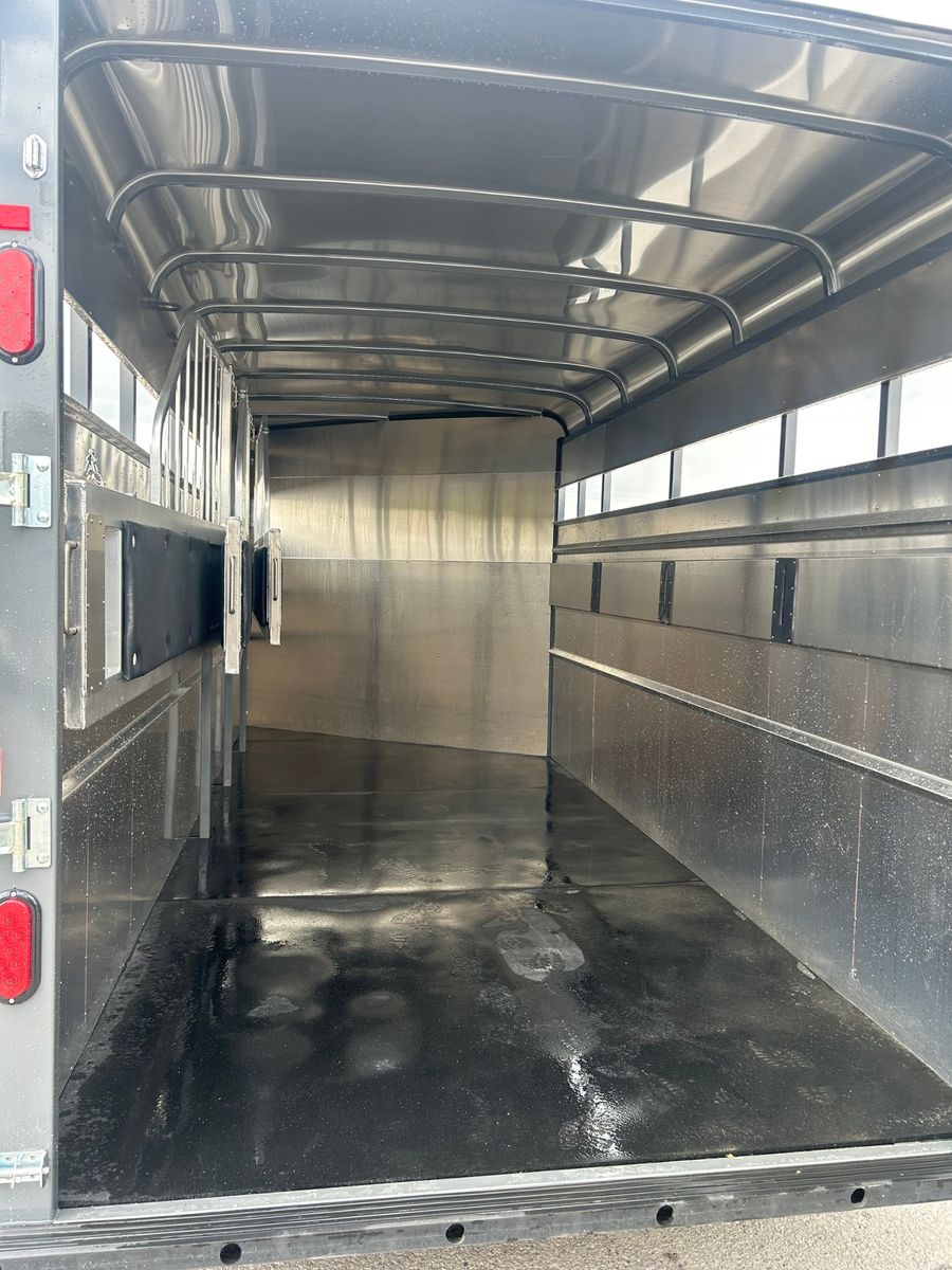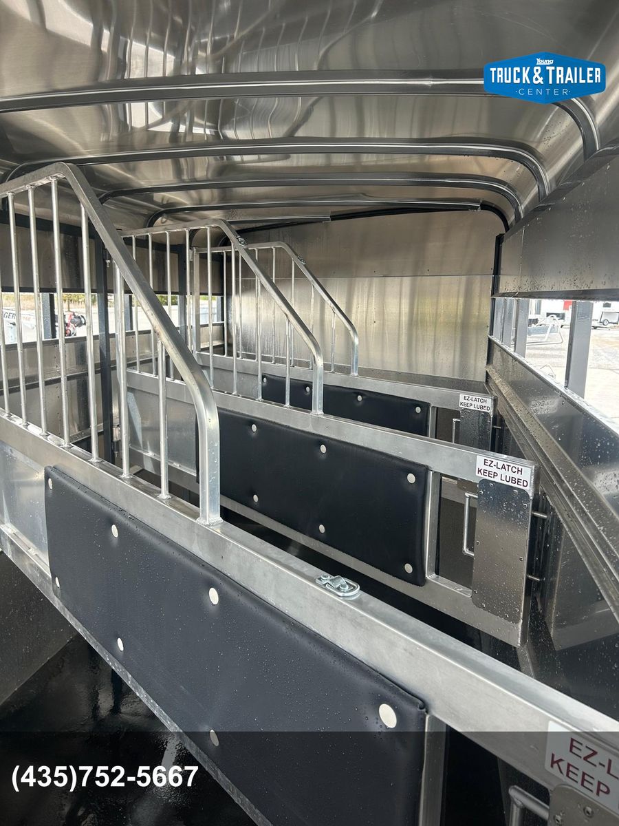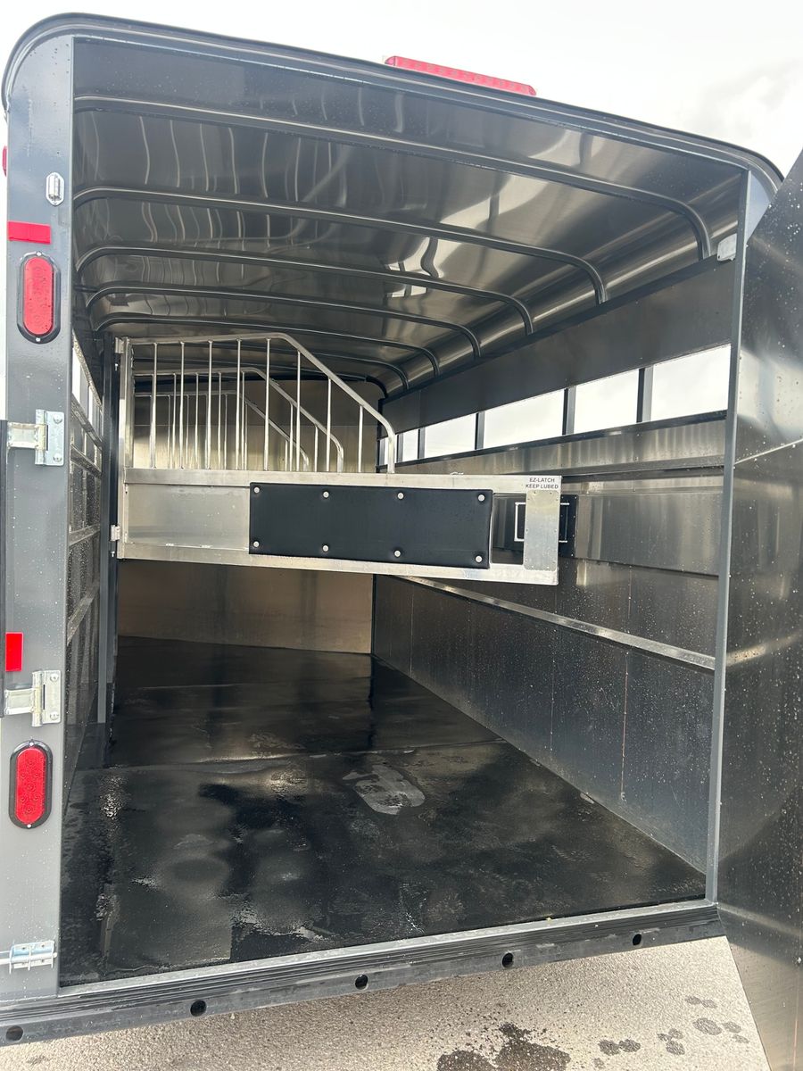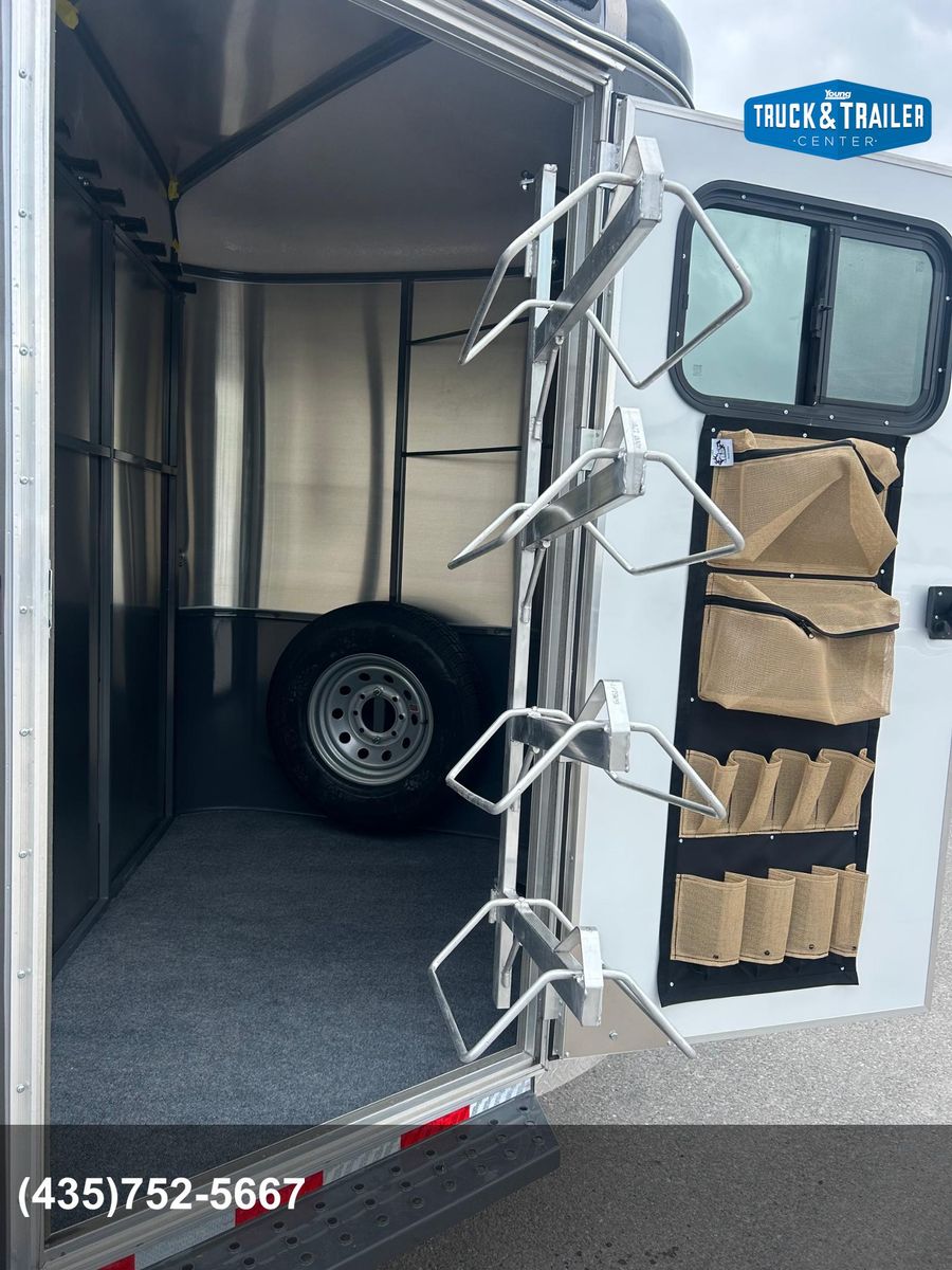 4 Horse Bumper Pull Front Tack Room Swing out Saddle Racks Bridle Hooks Horse Area Has Floor Mats Aluminum Jail Bar Dividers w/ Pads Spare Tire