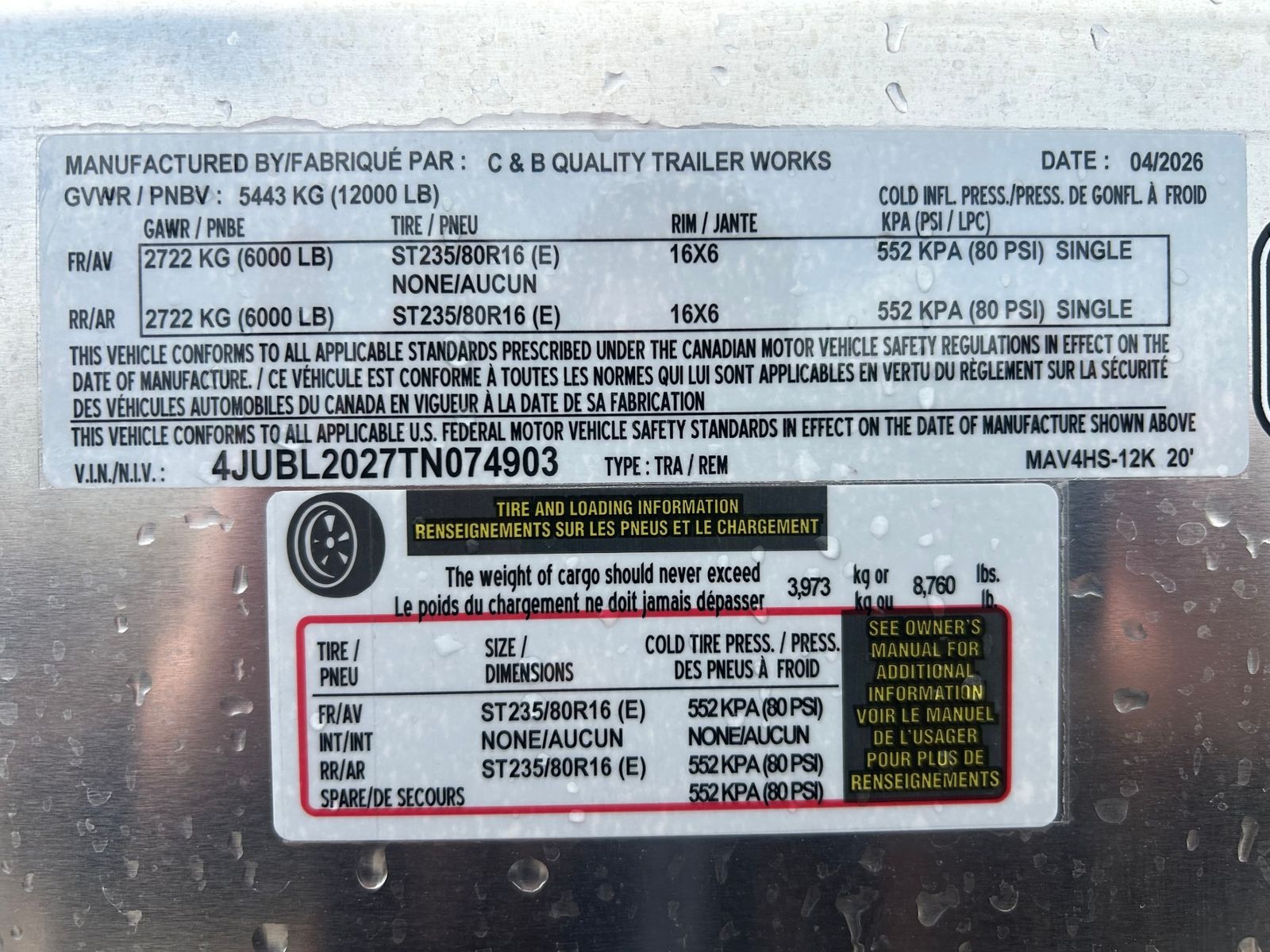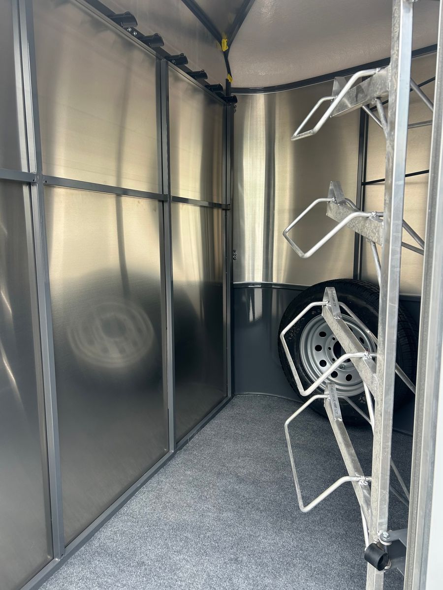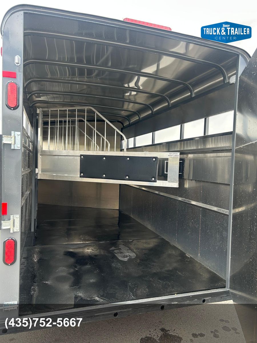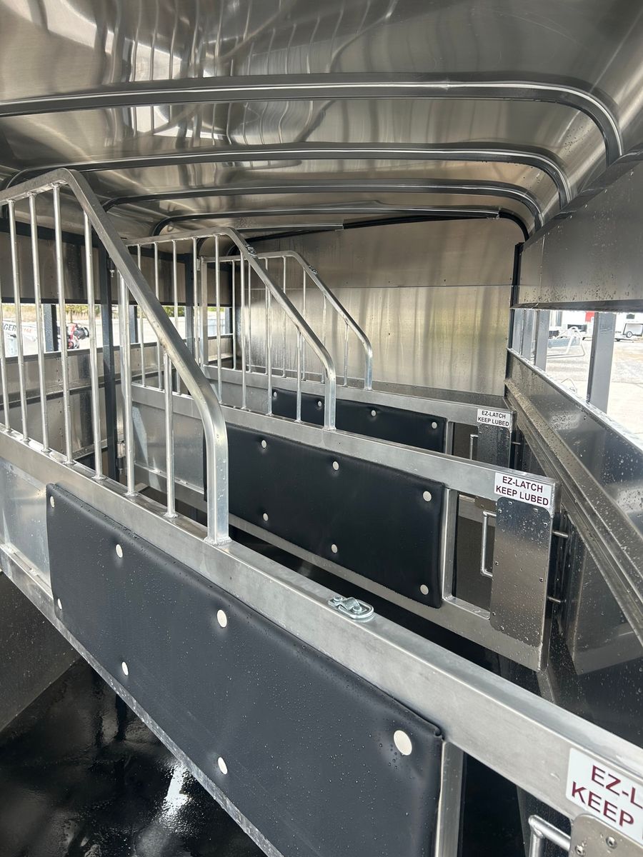 4 Horse Bumper Pull Front Tack Room Swing out Saddle Racks Bridle Hooks Horse Area Has Floor Mats Aluminum Jail Bar Dividers w/ Pads Spare Tire