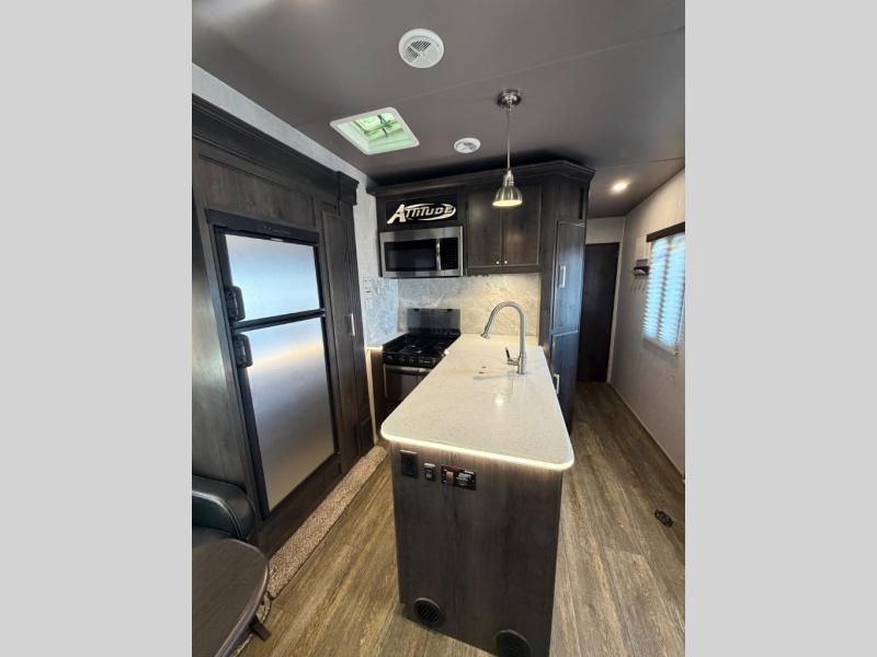 The 2020 Eclipse Attitude Limited 2814GS is widely regarded as one of the most capable and well-equipped toy haulers in the "Wide Lite" category. Designed for the serious off-road enthusiast, this unit features a massive 150-gallon fresh water capacity and an 18' 10" garage area, ensuring you have the space and resources for extended trips deep into the backcountry. With its 102" wide-body construction and vacuum-bonded fiberglass walls, this Attitude is built for both durability and style. Whether you are hauling a four-door side-by-side or multiple bikes, this trailer provides a premium mobile headquarters without the weight of a traditional fifth wheel.