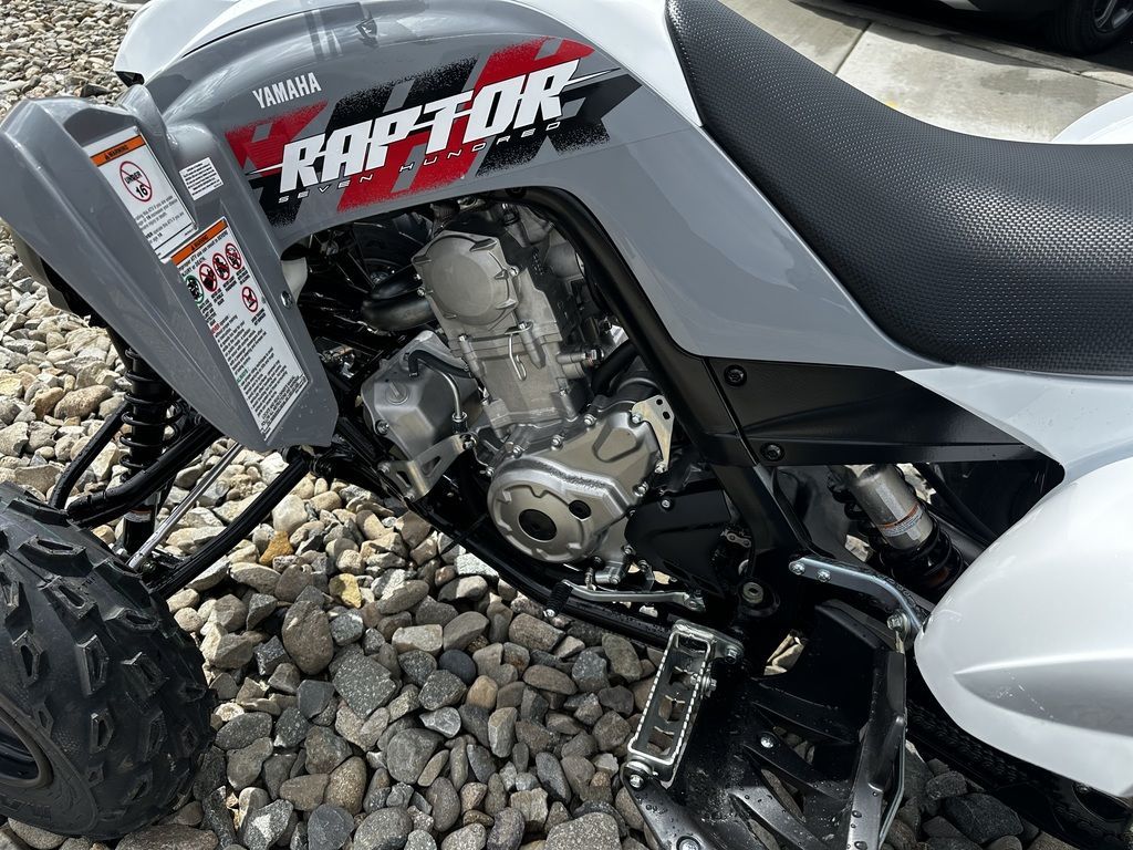 2026 Yamaha Raptor 700AFFORDABLE BIG-BORE PERFORMANCEBased on the legendary R model, the Raptor 700 offers big-bore performance for budget-minded enthusiasts.Features may include:ENGINEBig-bore 686cc, liquid-cooled, fuel-injected engine produces huge torque and thrilling power across the entire rev range.Light and strong forged piston, connecting rod and crankshaft produce hard-hitting, quick-revving power.Dual counterbalancers keep the engine running smooth all the way to the 9,000 rpm redline.Yamaha Fuel Injection (YFI) offers consistent engine performance in a wide range of conditions.Digital TCI with a 32-bit electronic control unit controls fuel injection and ignition for exceptional throttle response.Race-bred five-speed transmission with reverse means there's a choice of gears in just about all situations.CHASSIS/SUSPENSIONAdvanced chassis combines a hybrid steel/aluminum frame, Controlled-Fill aluminum subframe and cast aluminum swingarm.Hybrid frame produces a super-strong structure and the lightest ATV in its class.Trail-tested front socks offer 9.1 inches of wheel travel along with preload adjustment.YZ-style piggyback rear shock that gives 10.1-inch wheel travel along with preload adjustment.Drilled twin aluminum-piston front disc brakes and twin-piston rear brake deliver tremendous stopping power.Lightweight aluminum wheels help enhance suspension performance by reducing unsprung weight.ADDITIONAL FEATURESPush-button electric starter and reverse gear keep things nice and civilized when needed.Multi-reflector 30-watt Krypton headlights create a sporty look while LED taillight provides great visibility.Aggressive styling lends the Raptor 700 the menacing looks to match its impressive performance.Thumb throttle lever has ergonomic shape for less fatigue and handlebar-mounted flip-type parking brake lever is simple to use.For improved serviceability, the Raptor 700 is Yamaha Diagnostic Tool-ready.The Raptor 700 is proudly assembled in the USA to meet Yamaha's exacting standards for durability and reliability.