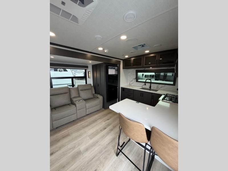 Chassis: Power tongue jack and four-point electric stabilizer jacks for effortless setup