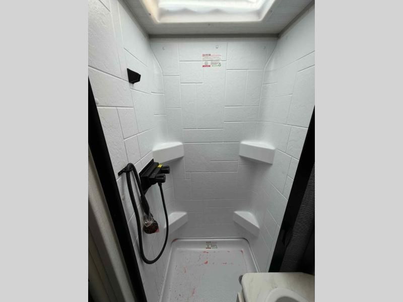 Full bathroom with a residential-style shower and 4-speed high-power fan