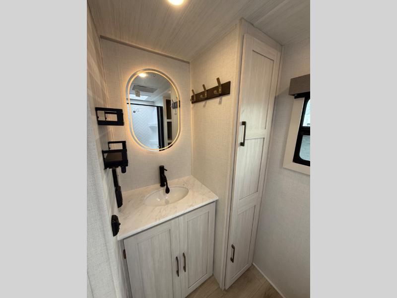 Layout: Rear-bath floorplan with a massive roadside slide-out for an open-concept feel