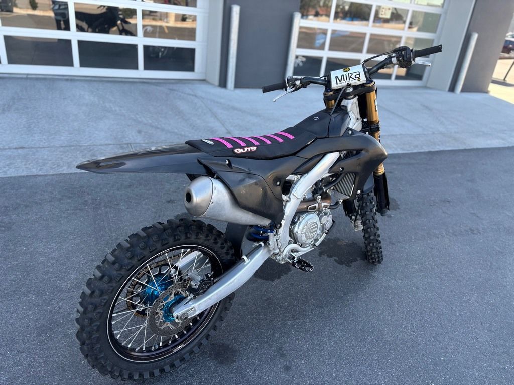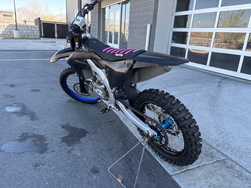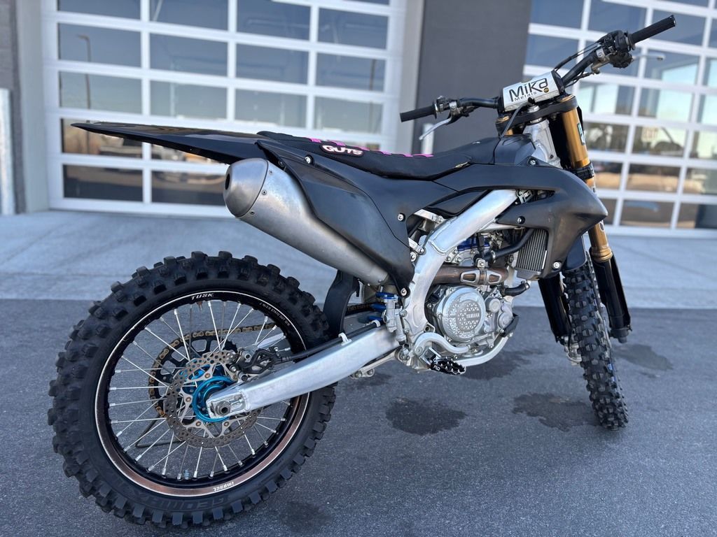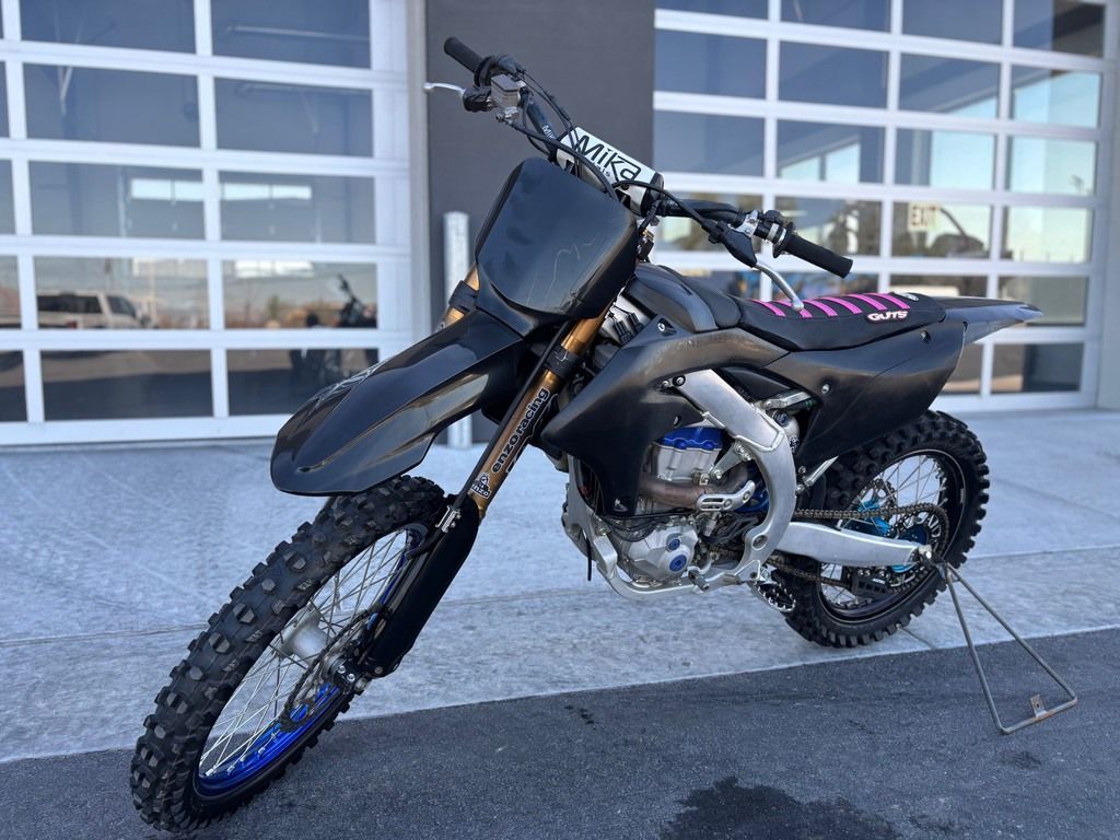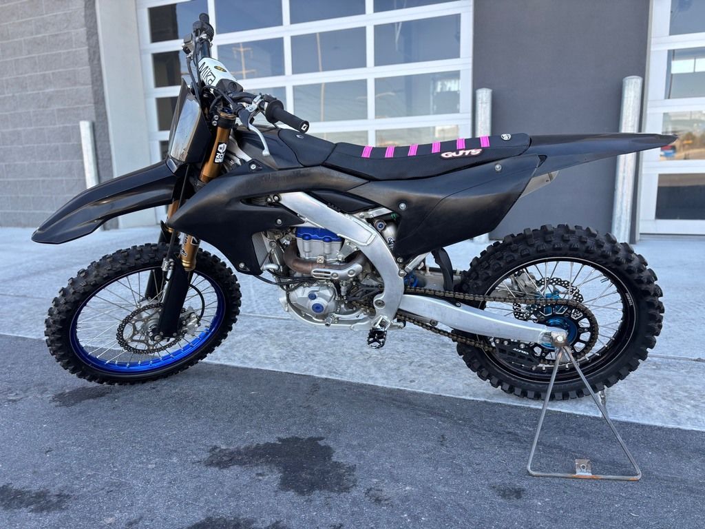 2023 Yamaha YZ450F Monster Energy Yamaha Racing Edition RIDE LIKE THE REIGNING CHAMP Get the look & feel of a Yamaha factory ride with your own Monster Energy-inspired, all-new YZ450F. Features may include: Engine All-New 450cc Four-Stroke Engine The new 2023 YZ450F's engine has been completely redesigned, now with a 500 rpm higher rev limit. Among the changes are new exhaust and intake port shapes, larger diameter titanium intake valves, new piston, cylinder, crankshaft and balancer assembly, and a switch from wet sump to dry sump lubrication. The combined effect of these features is more power across the entire rev range in a lighter, more compact engine. New Yamaha Power Tuner App The free-of-charge Yamaha Power Tuner App brings the power of the GYTR® Power Tuner to your iOS® or Android® device. Using wireless connectivity to talk to the bike’s onboard CAN-bus network, the app allows owners to adjust air/fuel mixture and ignition timing to tune engine performance for track conditions, record race log information and monitor a range of data such as maintenance and system diagnosis, engine run time and more. New for 2023, the app has been revised to be more user-friendly. New features include an intuitive “Simple Tuning” slide bar for engine mapping, Traction and Launch Control tuning, lap timer, along with engine and suspension tuning guides. Additionally, new lightweight handlebar-mounted switchgear allows on-the-fly selection of preloaded engine maps. CHASSIS/SUSPENSION All-New Aluminum Bilateral Beam Frame Striking the perfect balance of precise cornering performance and handling stability, the completely redesigned aluminum bilateral beam frame consists of more than 10 different aluminum components welded together. This provides the opportunity to carefully tune rigidity and flex characteristics of each component to ensure competition-level performance. The result is a better handling machine with lighter feel, improved bump absorption and increased traction, allowing the rider to enter corners with greater confidence and more line choices. Revised Class-Leading Suspension High-spec fully adjustable Speed Sensitive System KYB® coil spring-type fork provides exceptional bump absorption. The linkage-type rear suspension features a KYB® shock with damping characteristics to match the new YZ450F's chassis. Newly revised internal valving works in combination with the new frame and body to improve traction and increase cornering performance. Additionally, the front fork now features a new hand operated compression damping adjuster for simple, toolless adjustments. Race-Winning Details The YZ450F boasts a wide range of top-spec details including 1-1/8-inch aluminum tapered handlebars, new compact PVC handlebar pad, new lightweight throttle cable, wide footpegs with new lightweight aluminum alloy brackets, a quick-adjust clutch perch, stylish blue rims and a lightweight gold drive chain with new YZ450F-specific chain guide.