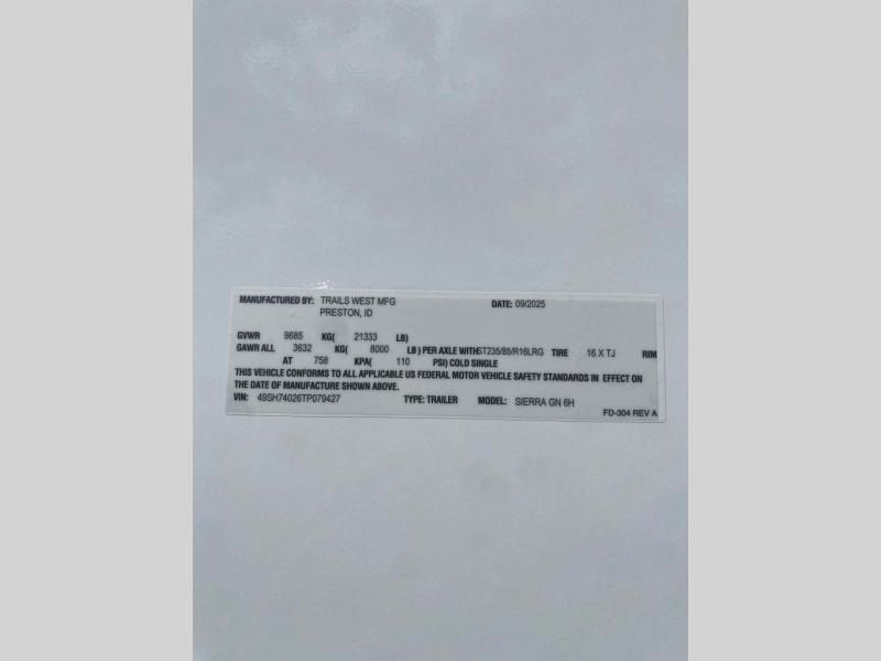 Name: New 2026 Trails West Sierra 6 Horse GN