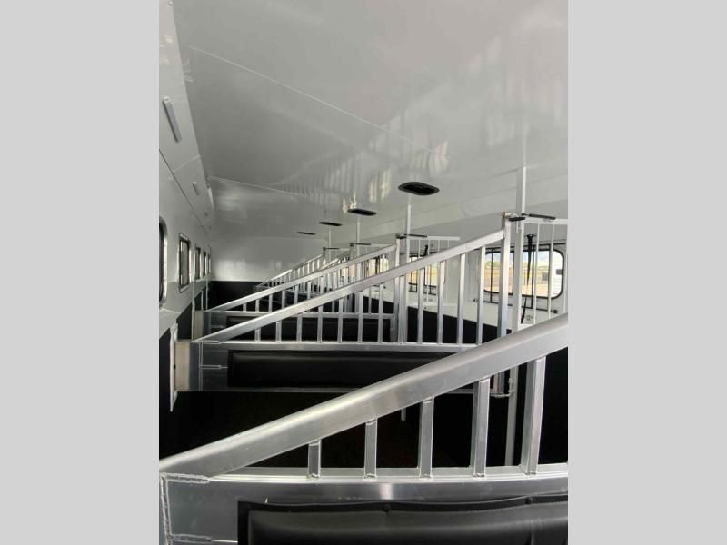 The 2026 Trails West Sierra 6-Horse Gooseneck is the ultimate high-capacity hauling solution for professional trainers, ranchers, and large families who demand "Ranch Tough" durability and superior animal safety. Built with a massive 7' 0" width and 7' 0" interior height, this trailer provides ample space for even the largest horses to travel in comfort. The Sierra's legendary electro-galvanized steel frame and aluminum skin construction offer the perfect balance of strength and weight savings. With its heavy-duty triple axle configuration and aerodynamic nose, this 6-horse model pulls with incredible stability, ensuring your livestock arrives at their destination fresh and stress-free.