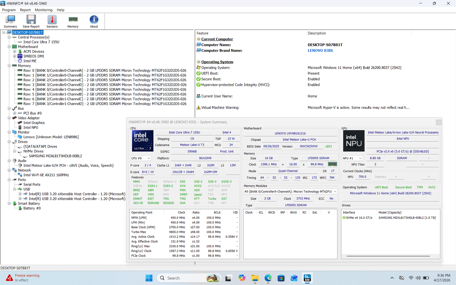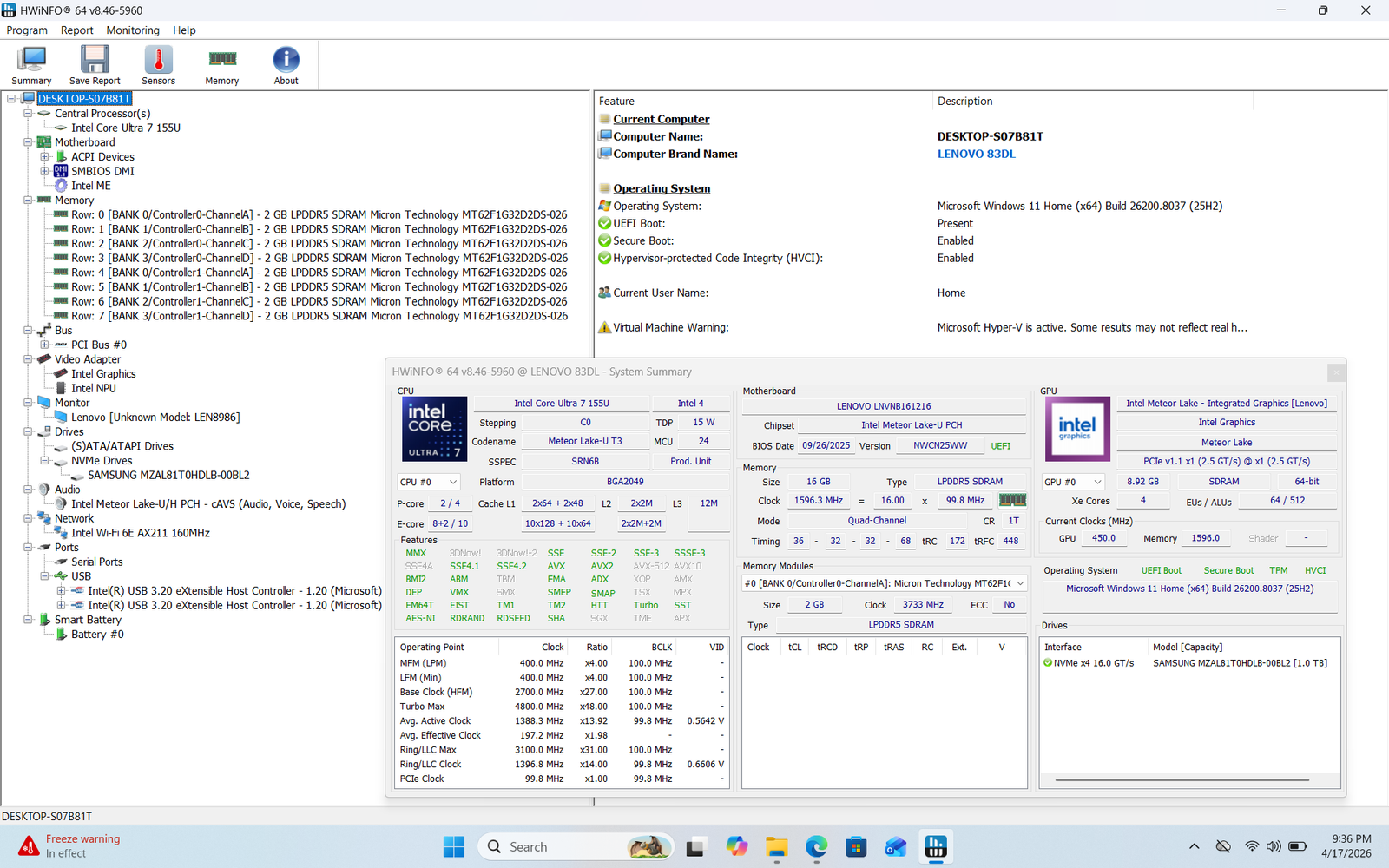 CPU: Intel Core Ultra 7 155U