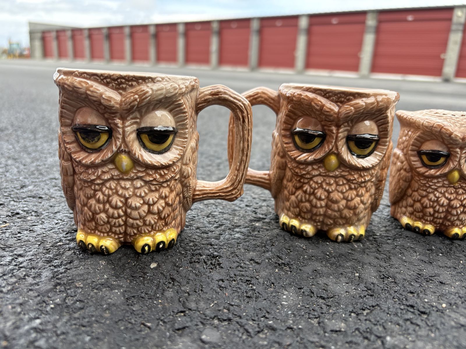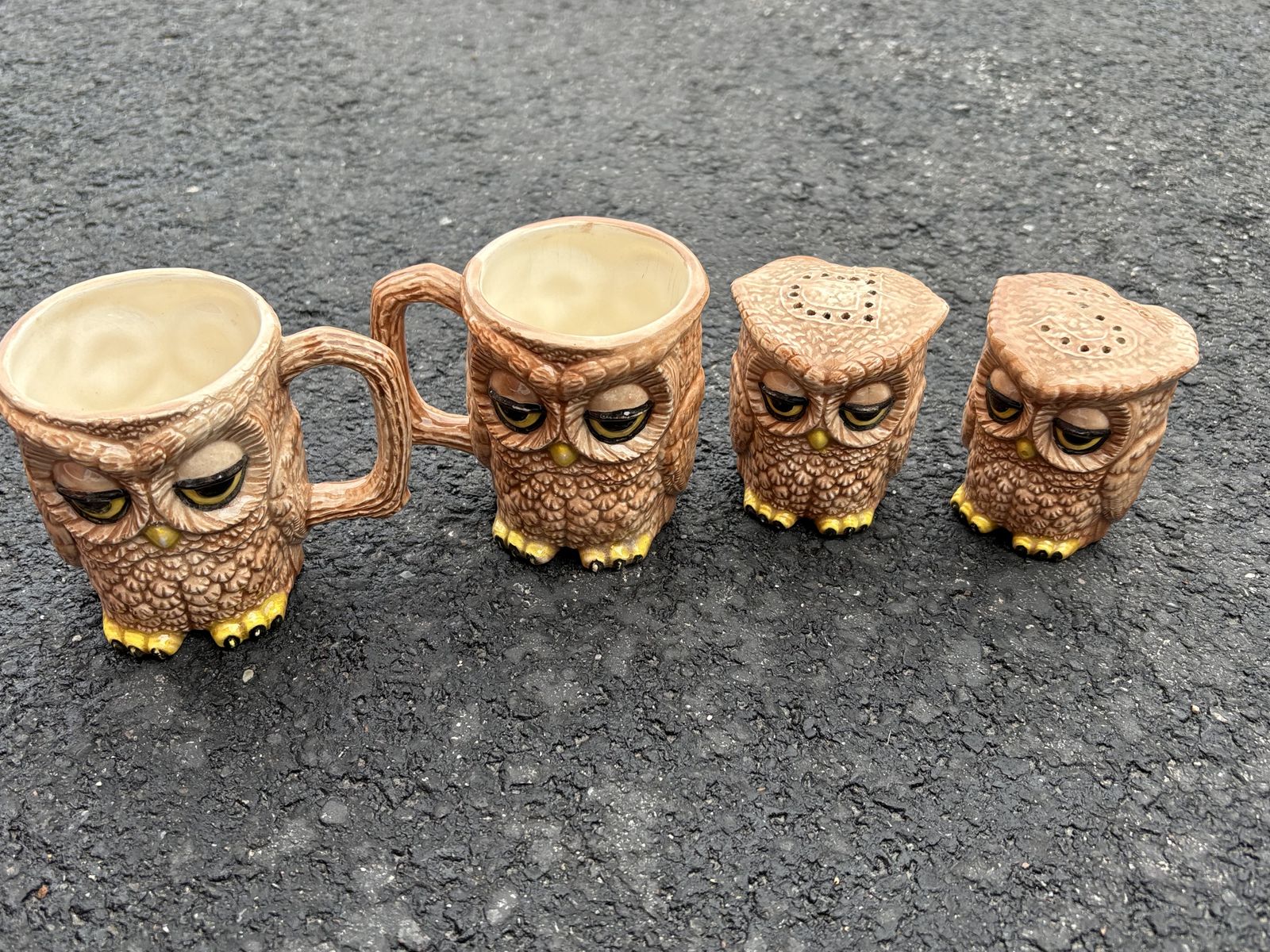 VenmoVintage 1970’s sleepy owl mugs and salt pepper shakers I also have a big collection of vintage mid century owl decorations that I'm selling so be sure to check out my other listings set of mugs. $20 salt/pepper shaker set. $15