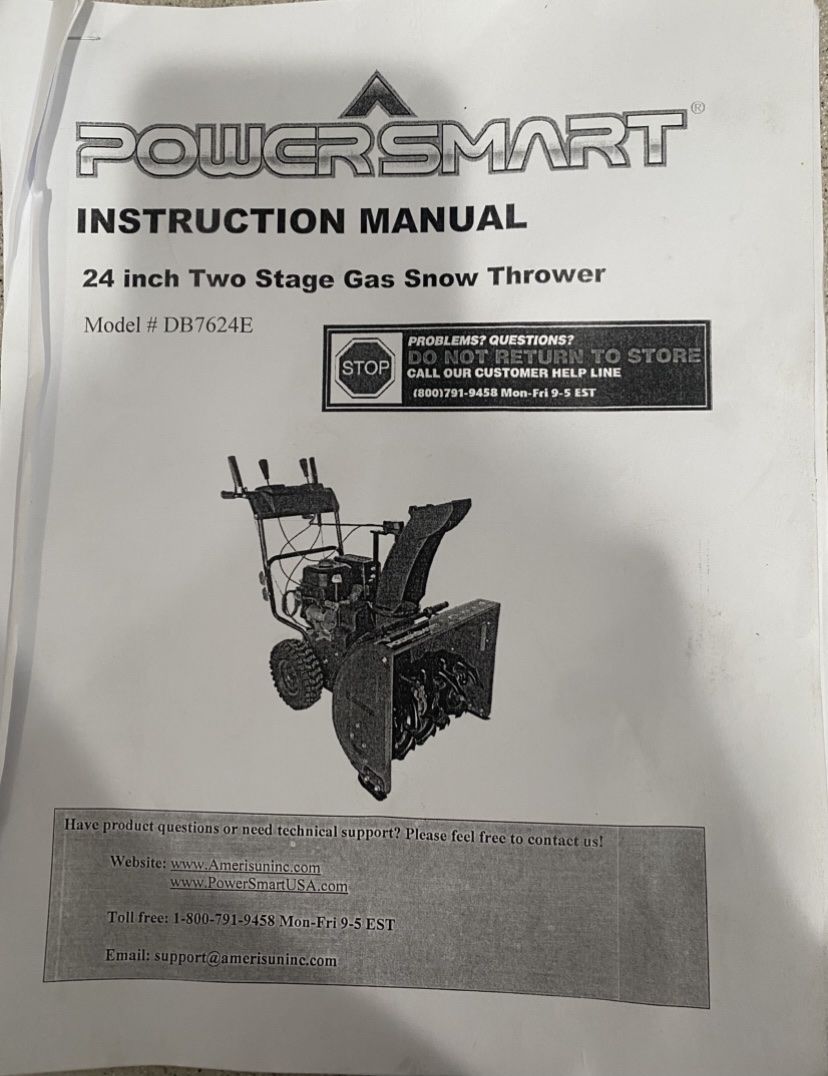 PowerSmart 212cc engine, push button electric start (or pull start) snowblower with throwing distance 40 ft. It's a 2 Stage Snow Blower, steel auger, width of 24 inches wide. Self-Propelled ~ 6 forward & 2 reverse speed settings with 13 inch snow tires, LED Headlights. Runs Great..!!! Ready for pickup. ** Family members moved.. Helping sell