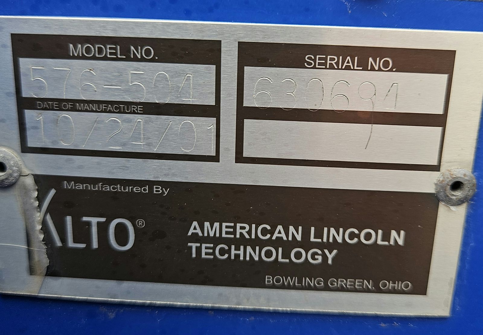 2002 American Lincoln/Alto riding lot sweeper. 50" sweep path, 16 cubic ft. high dump hopper, dust filtration shaker system, Kubota gas engine, hydrostatic drive, 705 hrs. Excellent mechanical condition and work ready. Located in Boise, Idaho. Call 208-860-8801