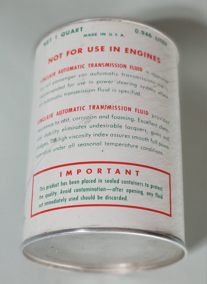 VenmoOffering this Sinclair ATF 1 quart can with a cardboard body. Can features the green dinosaur logo and is in great vintage condition. See pics. Located in Sandy. Call or text Doug 801-403-0543 KSL message is fine also.