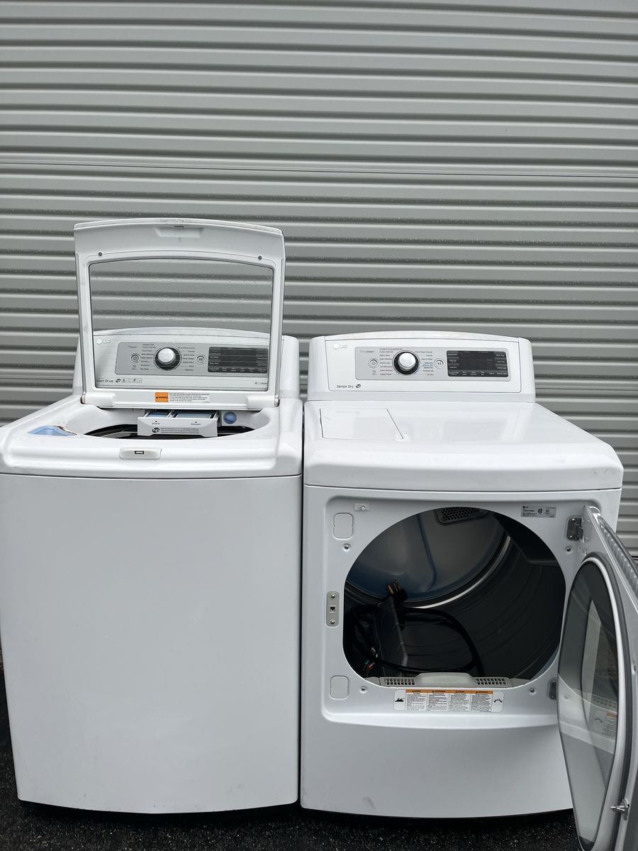 Clean Realiable Hi Capacity Hi Efficiency Washer and Electric dryer combo in Great mechanical and Great cosmetic condition. Has Lots of wash cycles like normal, delicate, quick wash, and sanitary also washes bulky loads. Dryer has Anti wrinkle and other cycles. Proffessionally inspected, serviced and sanitized after one owners usage. 5.0 Cu Ft Washer. 7.4 Cu Ft Dryer. 27 W 26 D 42 H. Free delivery within 15 miles, comes with all necessary attachments and warranty.