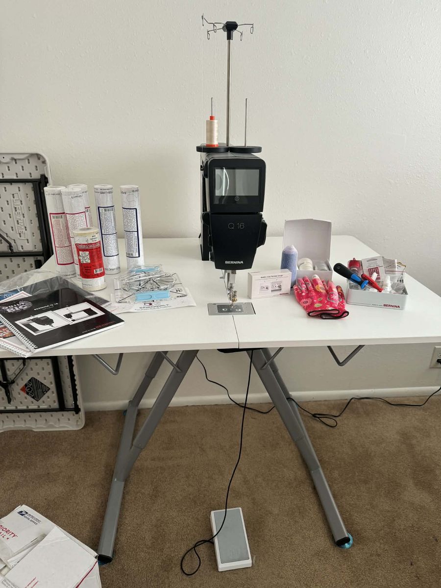 Bernina Q16 longarm quilting machine + table ️ Under 150,000 stitches ️ Includes extras: bobbins, needles, rulers, gloves, manuals