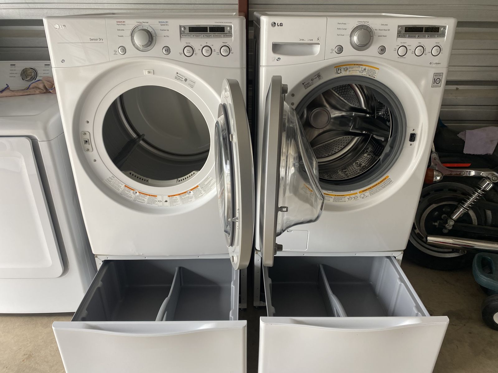 LG washer and gas dryer with pedestals for sale. The washer has 7 cycles, 5 temps, 3 spin speeds and 3 soil levels. The dryer has 7 cycles, 3 dry levels, 5 time dry and 3 temp controls. They are in very excellent working condition and are also a great set. CASH ONLY. Call or text me at 435-538-0178
