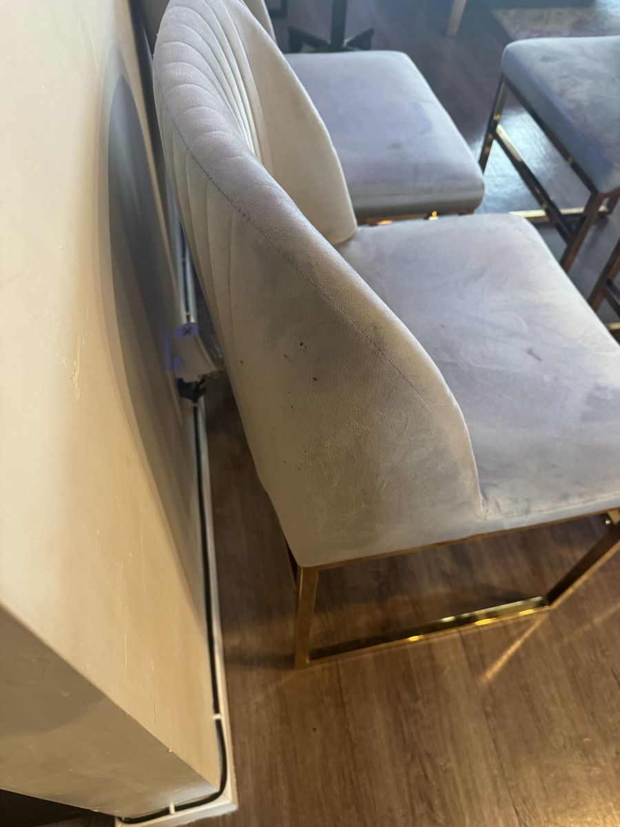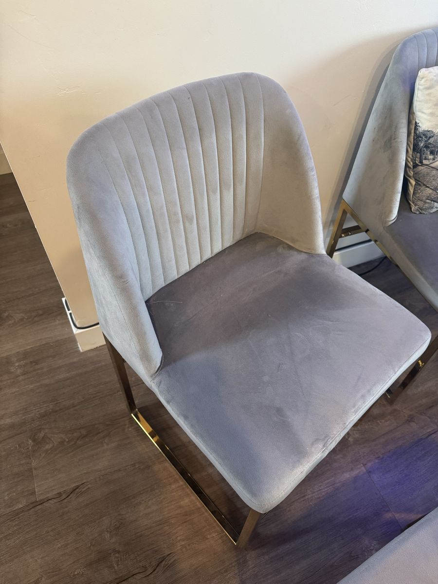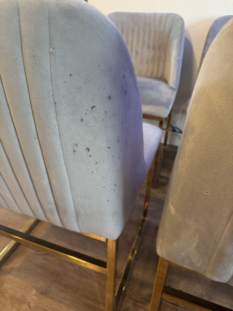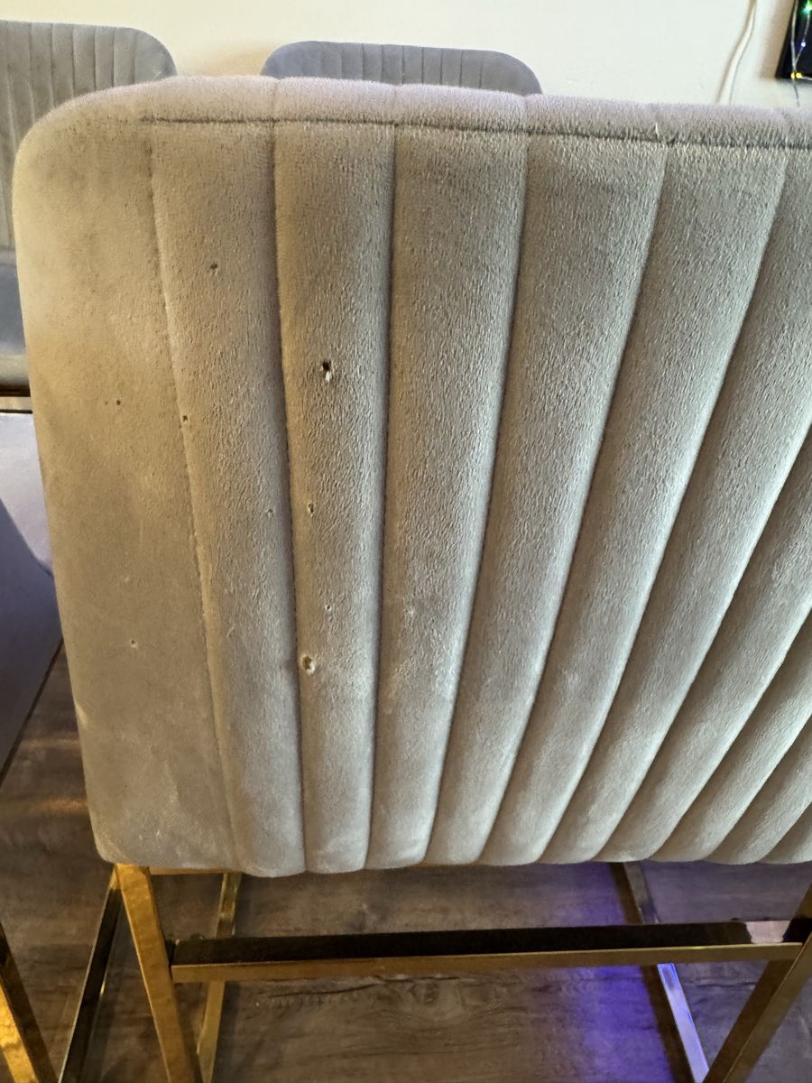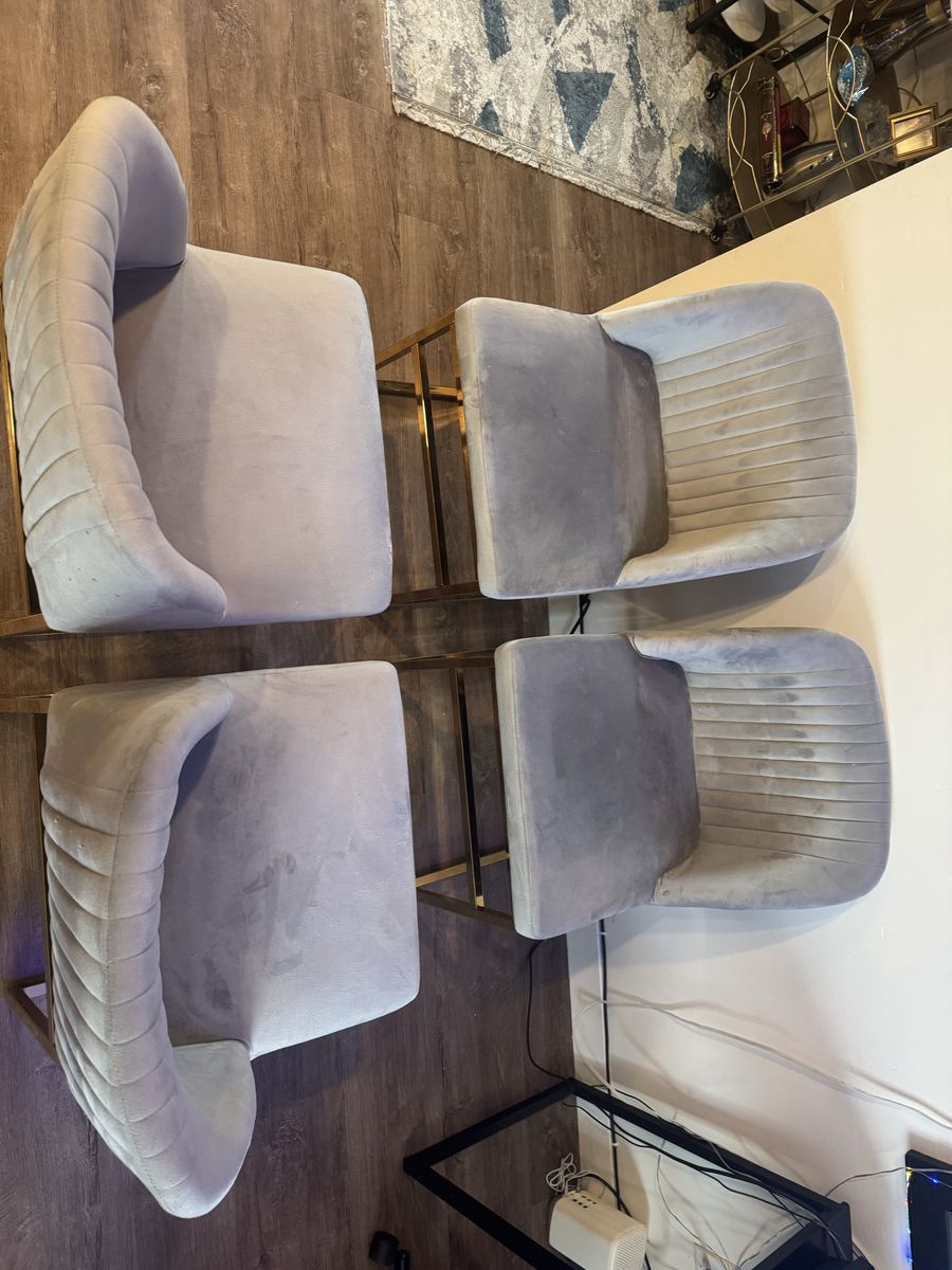 4 awesome chairs. They have been shampood and cleaned. There are no stains or tears just a few small holes in a couple of them. Dimensions are in pics!