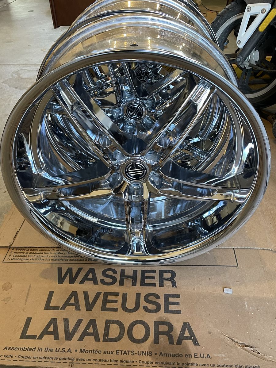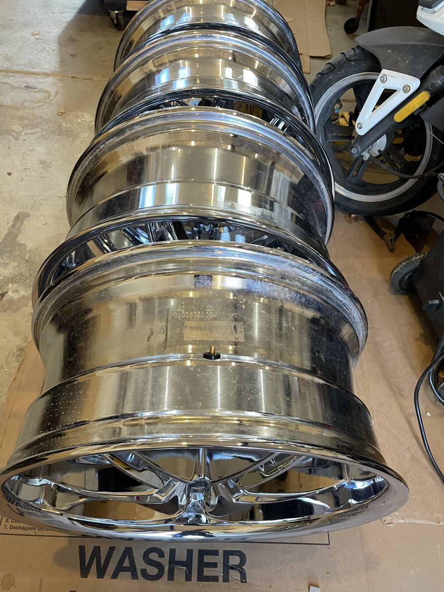 4- 20” 5x108 all chrome rims that look brand new 3- 245/35/20 tires In Great shape