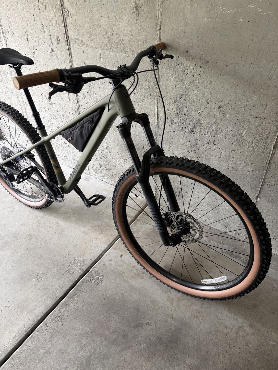 VenmoLooking for a trail-ready hardtail that can handle just about anything? This Trek Roscoe 7 is in excellent, barely-used condition and ready to ride. Key Details: Size: Medium (ideal for riders ~5'5"–5'10") Condition: Used, but practically brand new — very low miles Frame: Lightweight aluminum with modern trail geometry Fork: RockShox suspension for smooth, confident handling Drivetrain: 1x setup for simple, reliable shifting Tires: Wide, grippy tires for stability on dirt, gravel, or rough terrain Dropper post included for easy on-the-fly adjustments This bike is perfect for trail riding, exploring, or even just cruising with confidence. It’s been well cared for, stored indoors, and never abused.