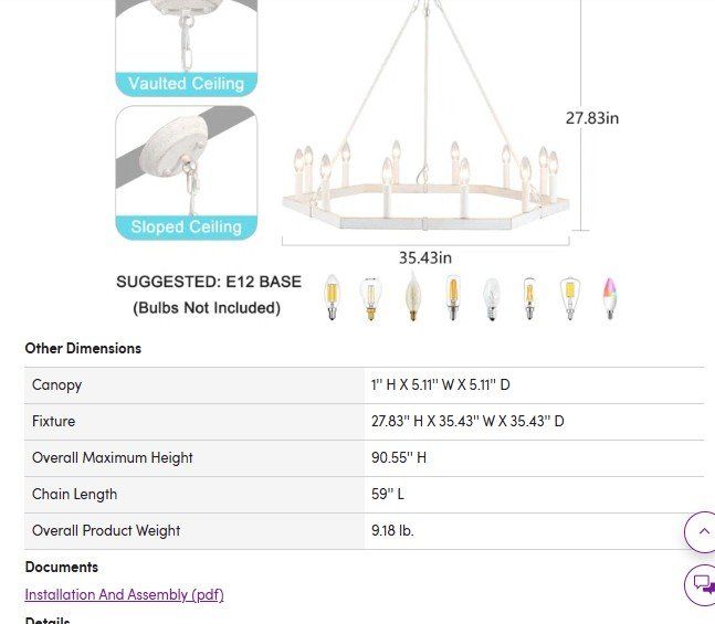 VenmoNew chandelier. We hung it in our flex room and it was just too big. Dimensions are in second photo.