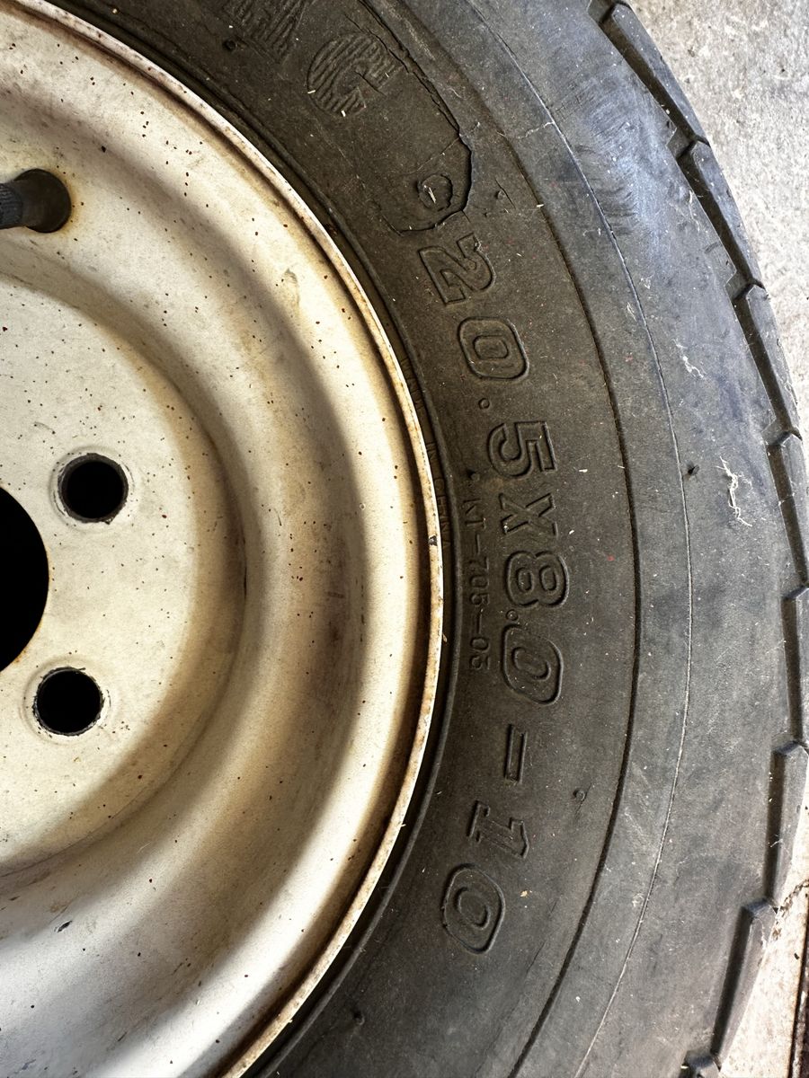 Trailer tire and wheel. Good tread on tire.
