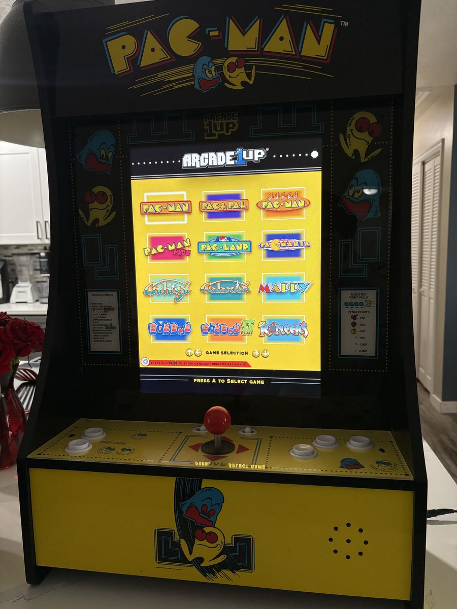 Venmo1up pac man machine in almost new condition, all of the buttons and the joystick work and are responsive, has 12 total games. 140 obo