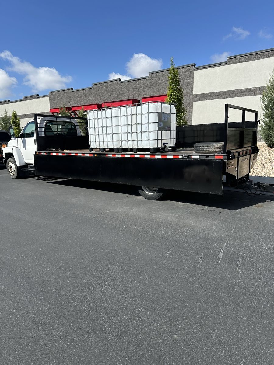 Truck bed is 21 feet trailer is 17 feet total length when towing trailer 48 feet Trailer has had some custom work done to as well comes with a brand new tractor supply toolbox on the front. Custom design space to store equipment on the inside of the trailer. $42,000 OBO