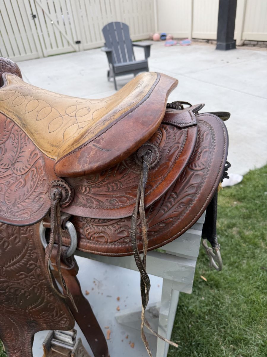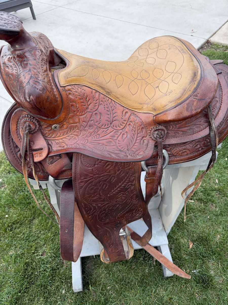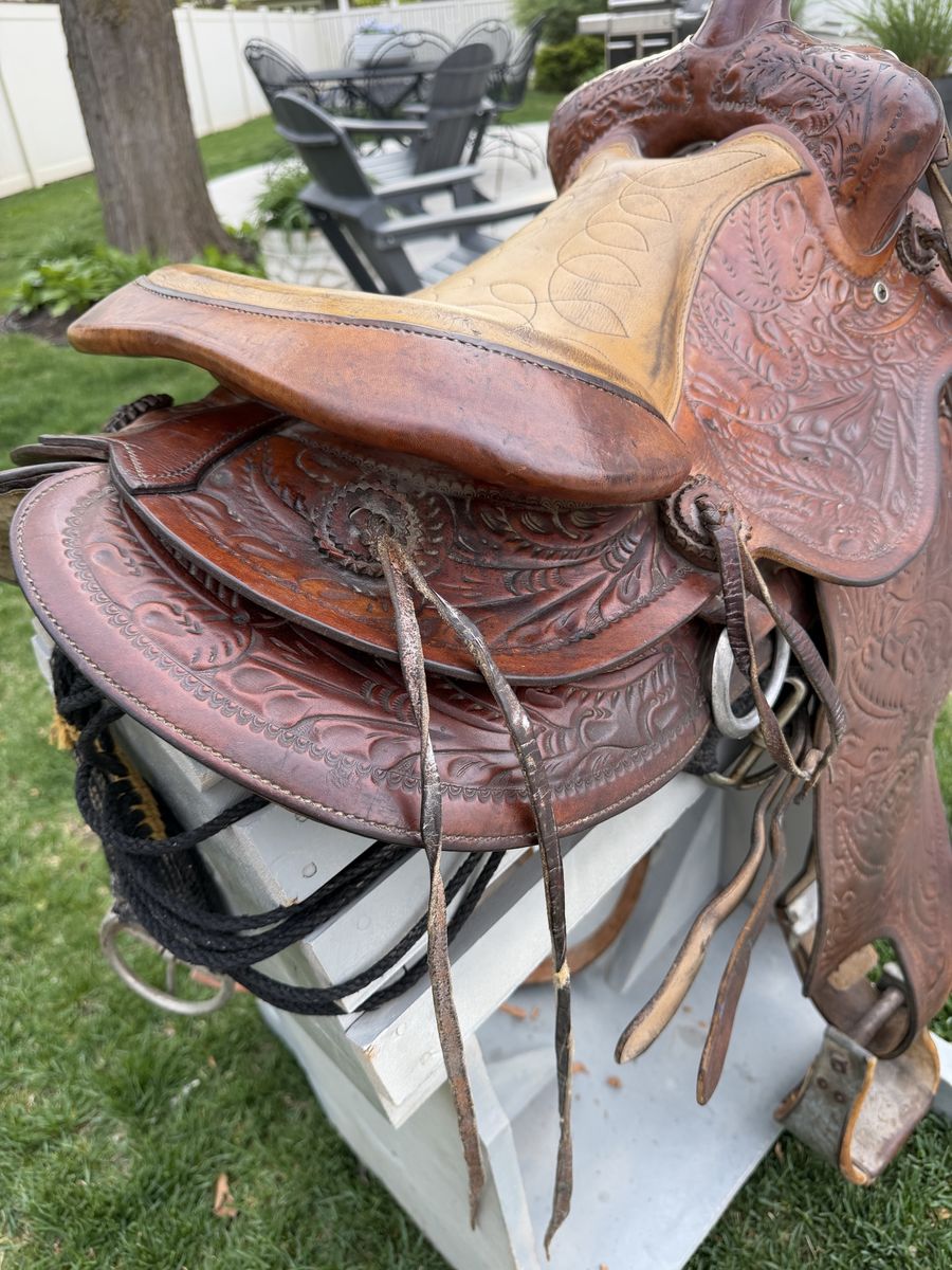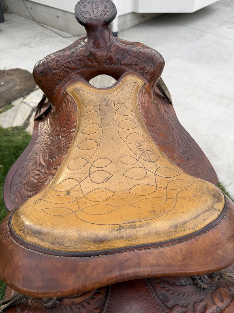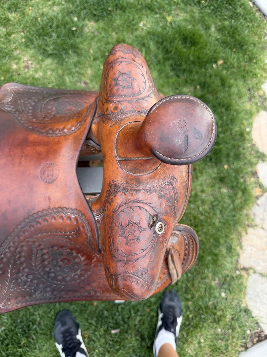 Saddle 2: Vintage 15" Western Trail Saddle (Simco) – Padded Seat & Heavy Tooling Price: $300 OBO