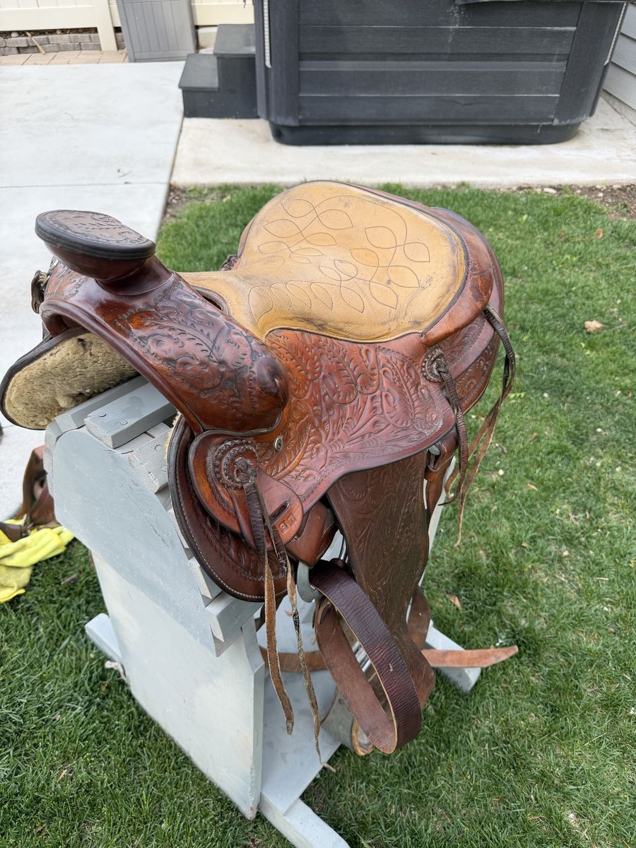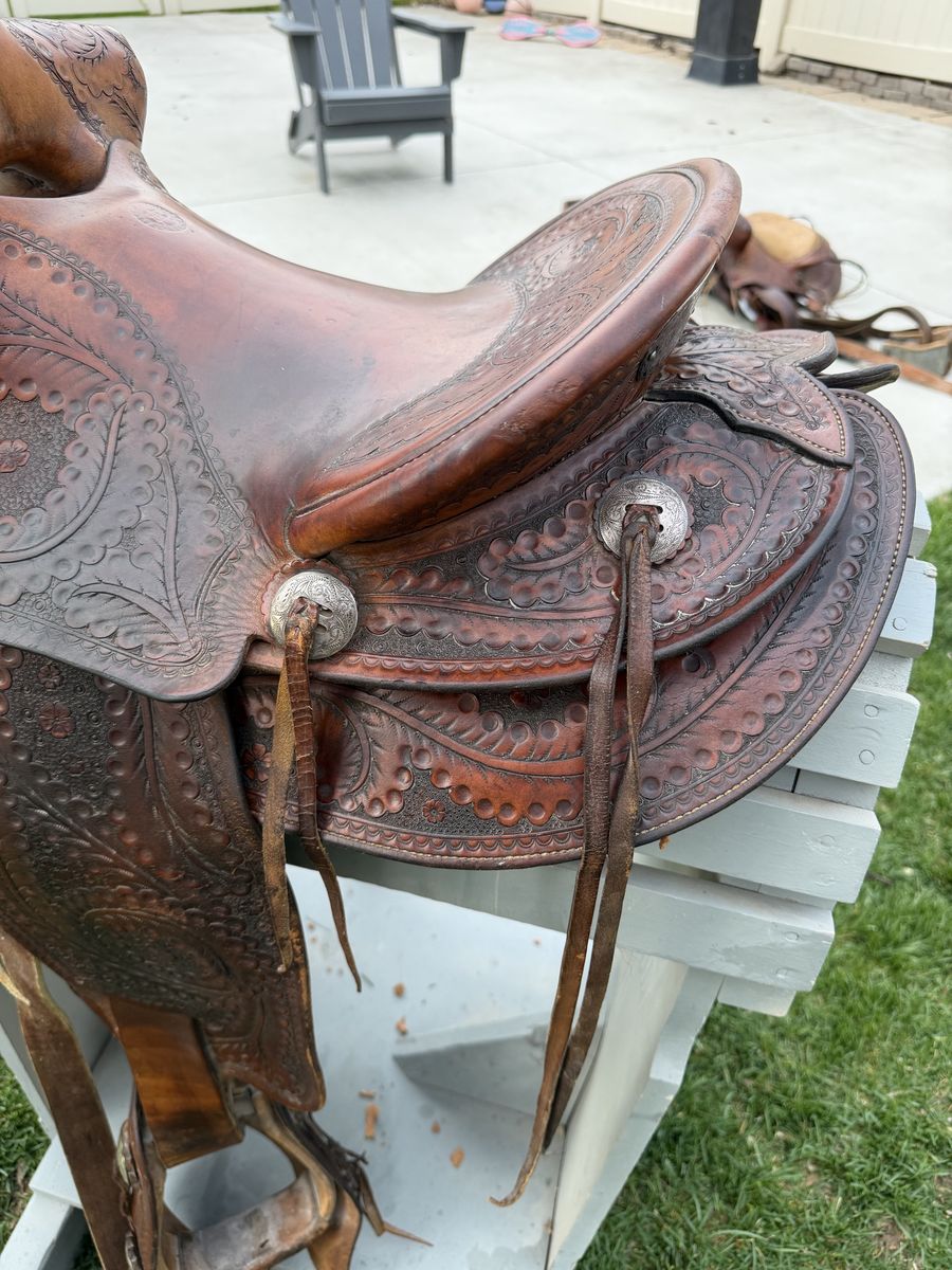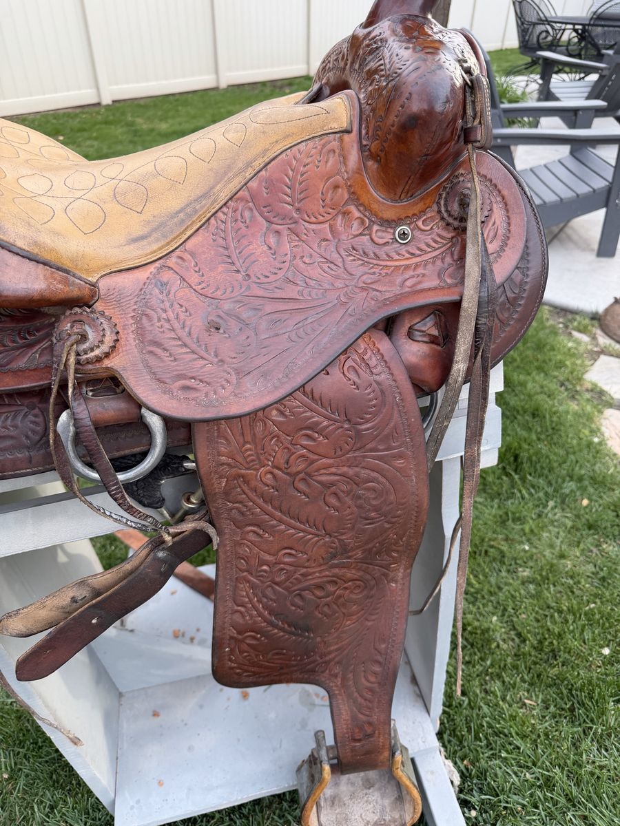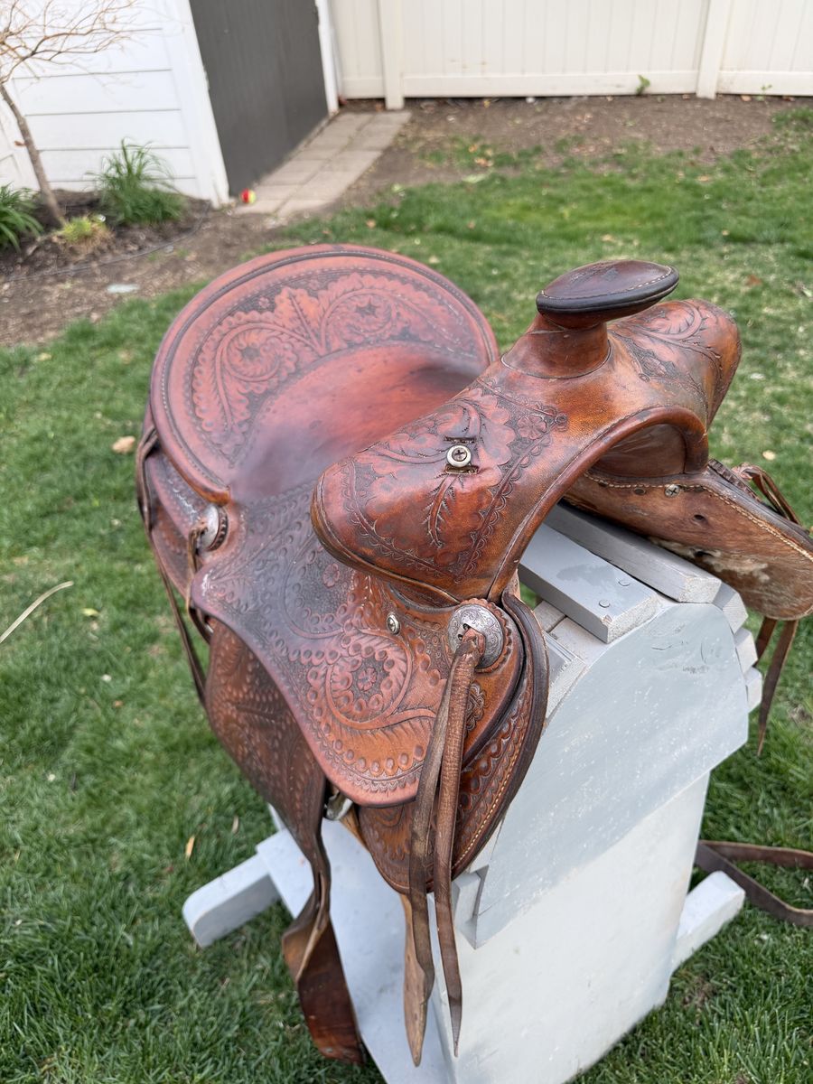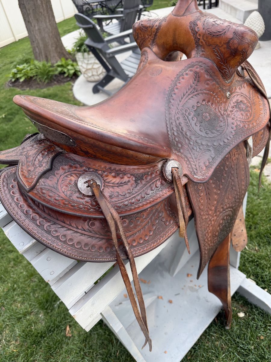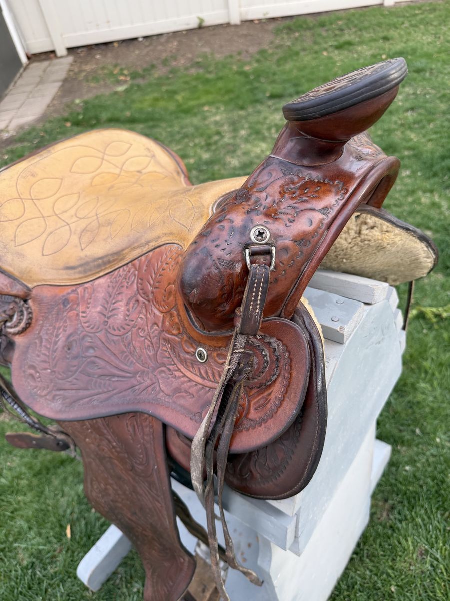 Saddle 2: Vintage 15" Western Trail Saddle (Simco) – Padded Seat & Heavy Tooling Price: $300 OBO