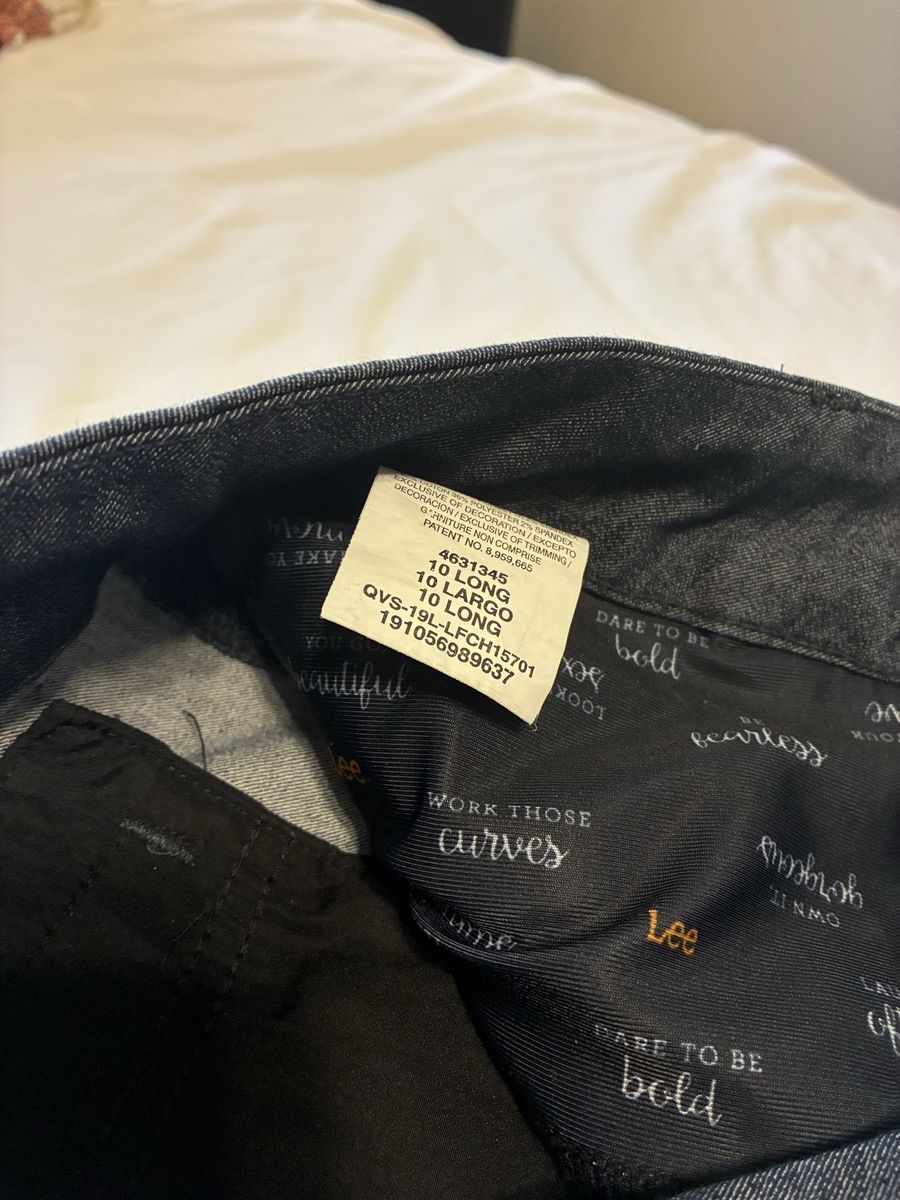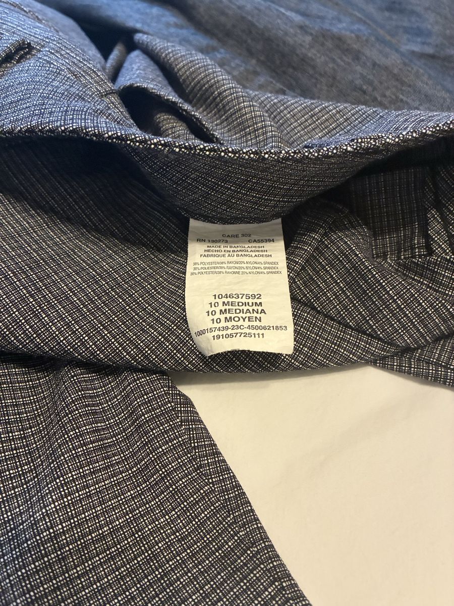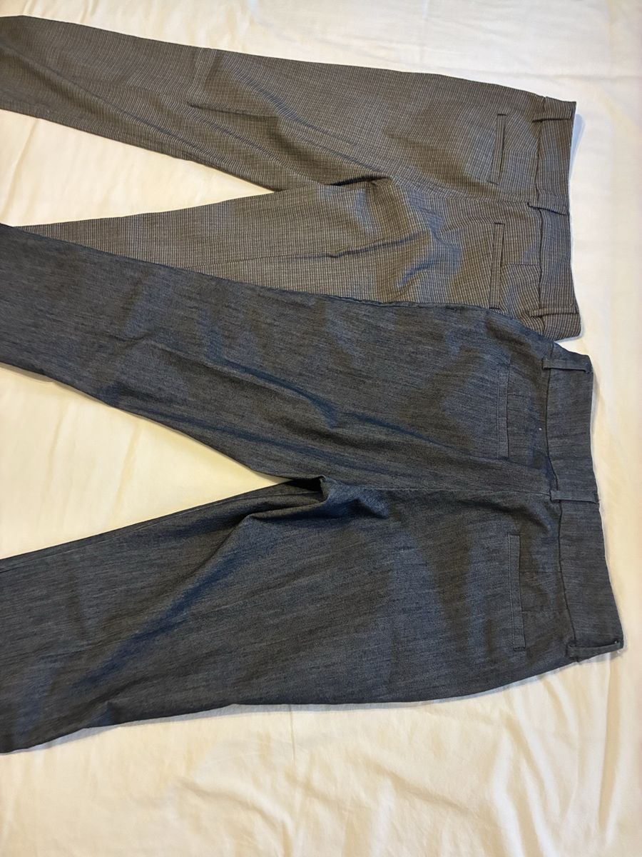VenmoVersatile bundle of 2 pairs women's pants! One pair is Lee brand, size 10M, dark grey with a subtle pattern. These are wrinkle free, super handy. Material is a comfy blend of polyester, rayon, nylon, and spandex. The other pair is dark blue, has a nice dress pant vibe, 10 long. Both great for work or just everyday wear.