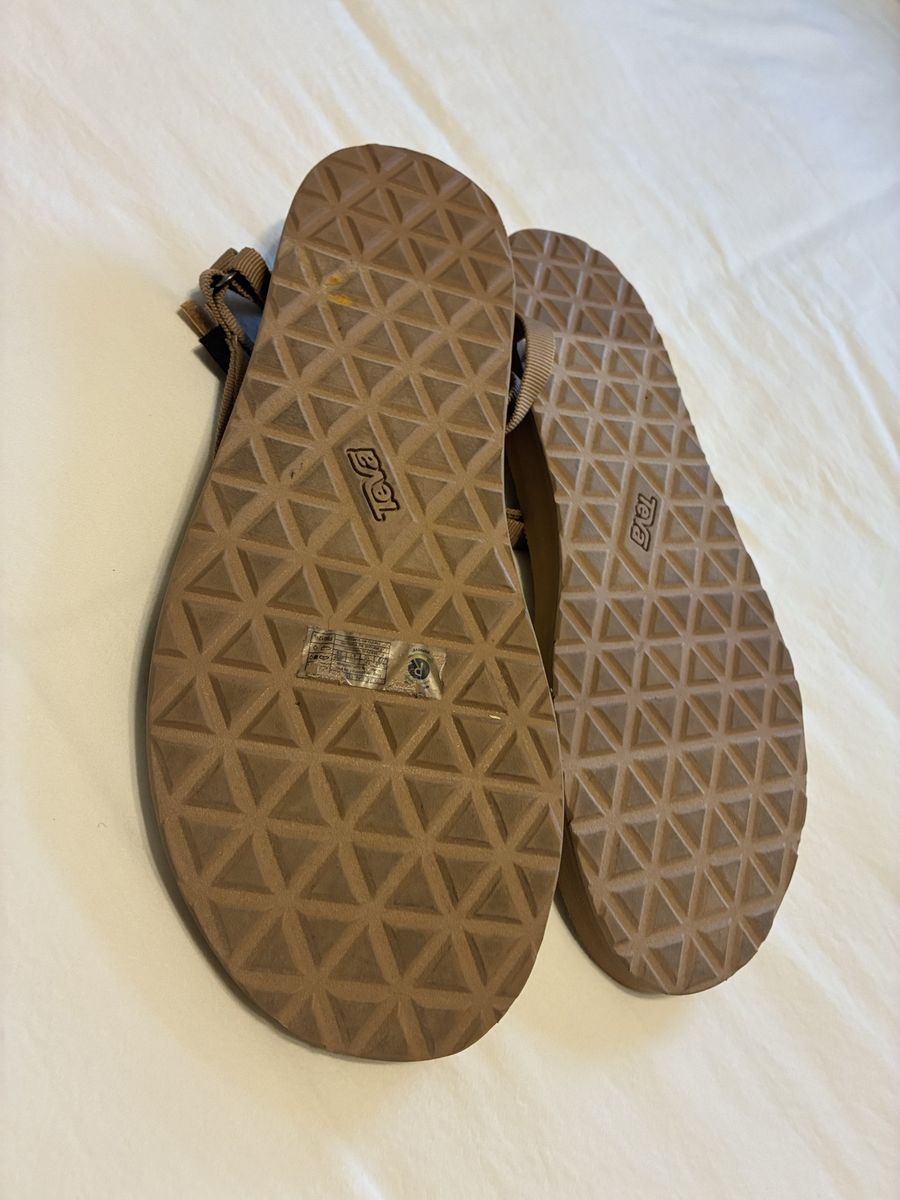 VenmoAuthentic Teva sandals. Brown color, women's size 12. Adjustable straps for a comfy fit. Great for casual wear or outdoors. Wore twice (not enough to wear off the sticker I apparently left on the bottom).