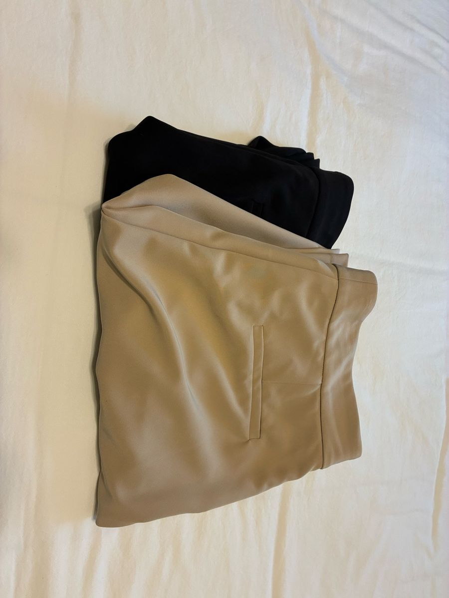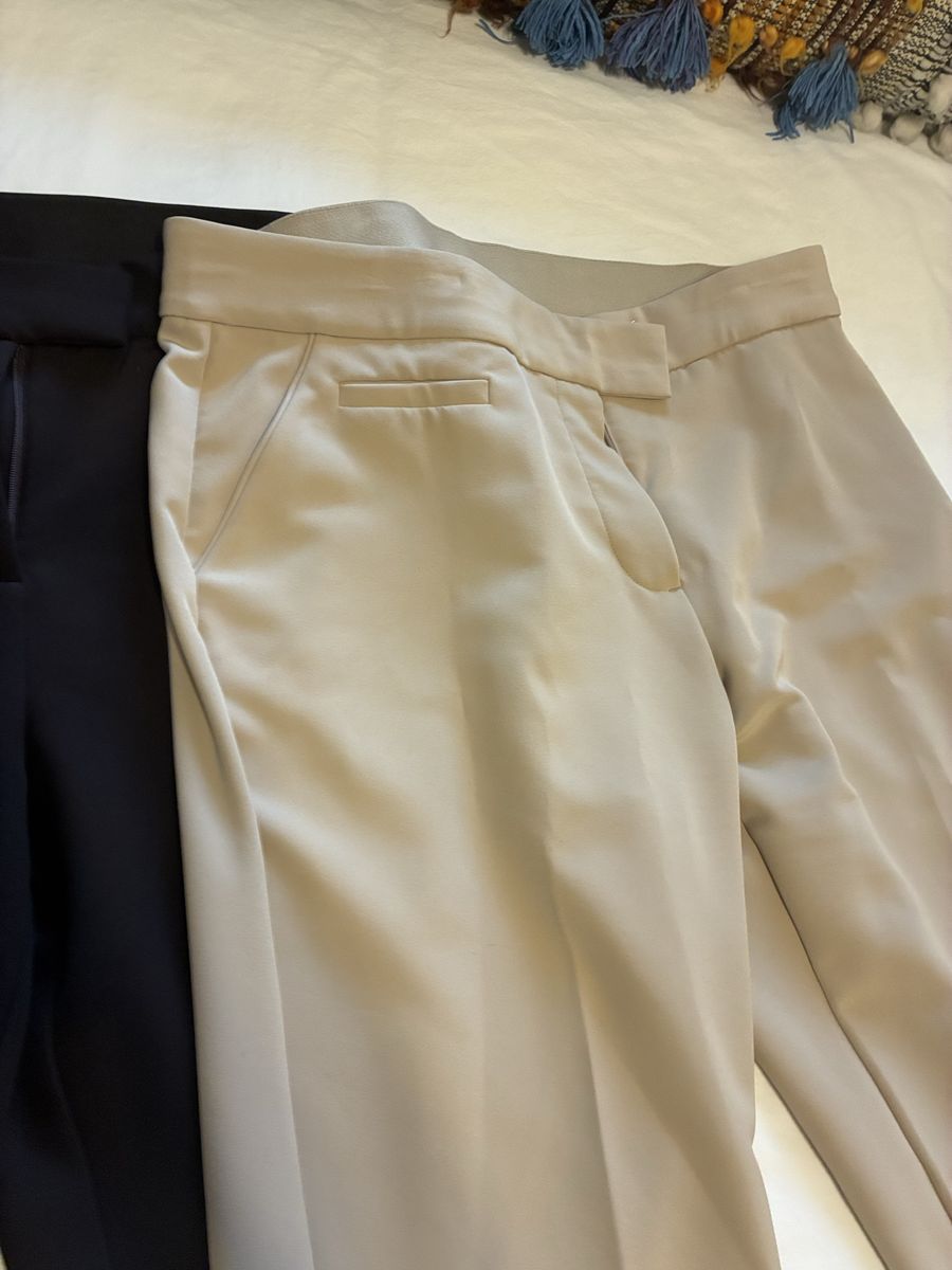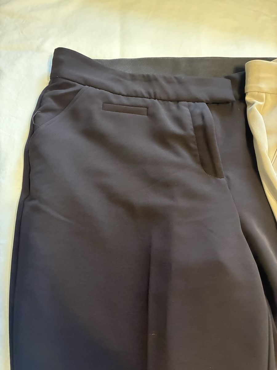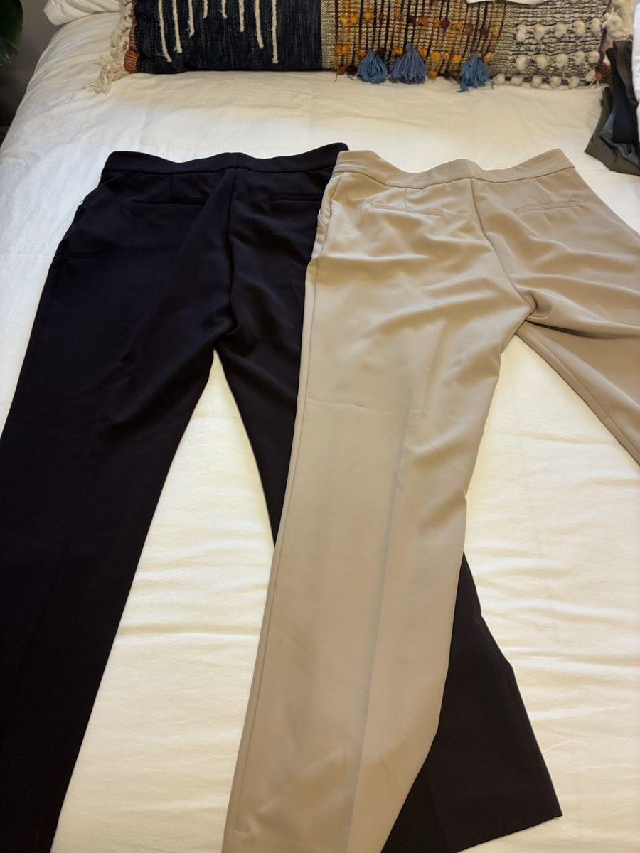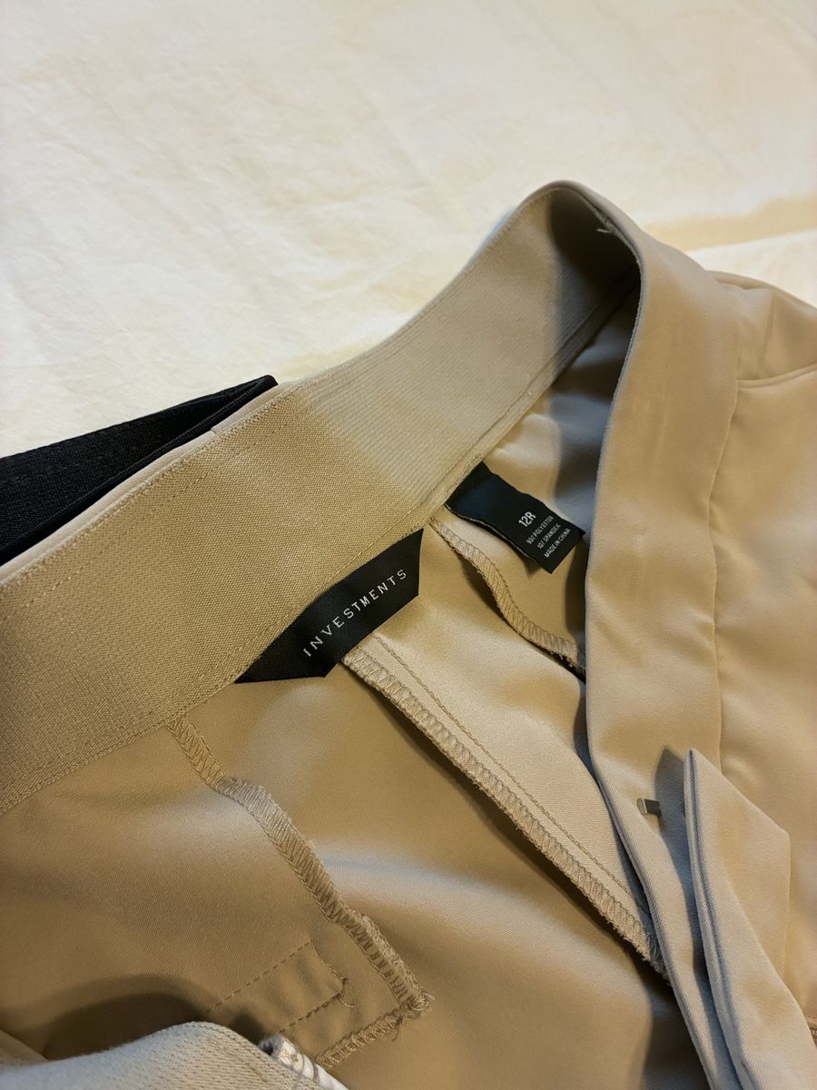 Comfy pair of Investments dress pants. one black pair and one beige pair. Both size 12R. Made with 90% polyester and 10% spandex. Great for work or just everyday wear.