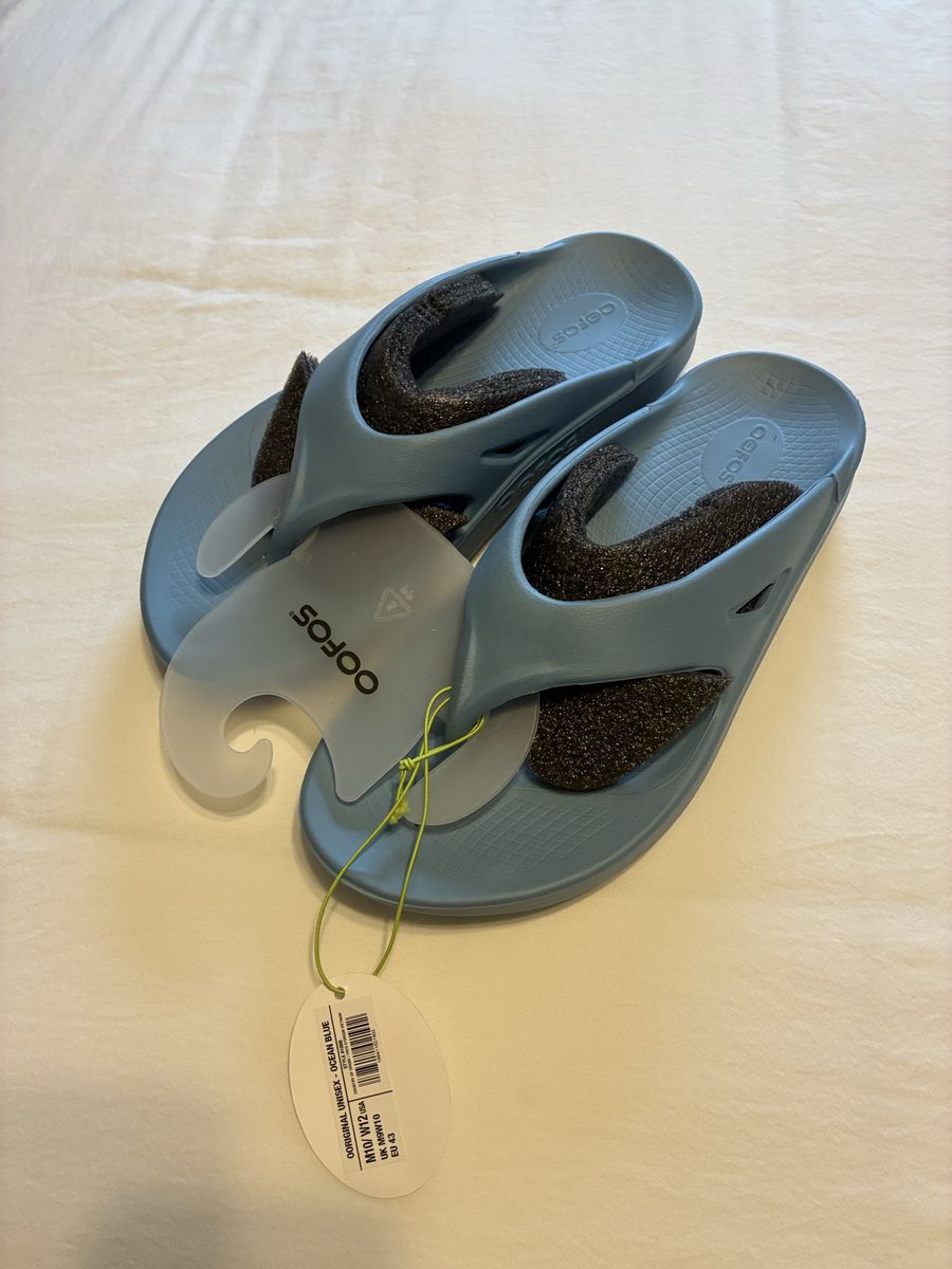 VenmoBrand new OOFOS OOriginal unisex flip flops. Ocean blue color. Size M10/W12 USA, UK M9W10, EU 43. Has tags still on. Super comfy. Check out my other listings for Women’s clothing sizes 8-16, L & XL.