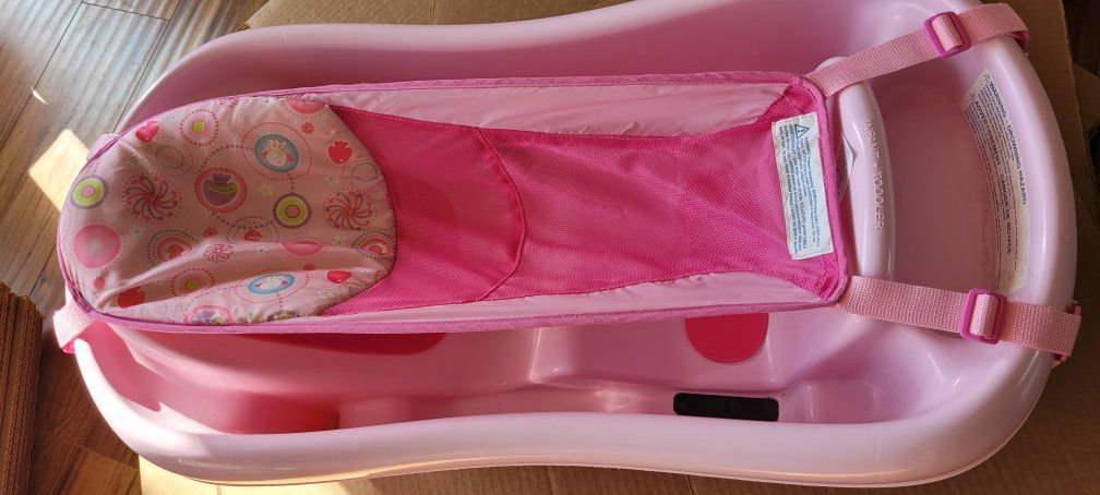 Small newborn sling for early bathing. Can remove when they get bigger. Fits in most sinks.