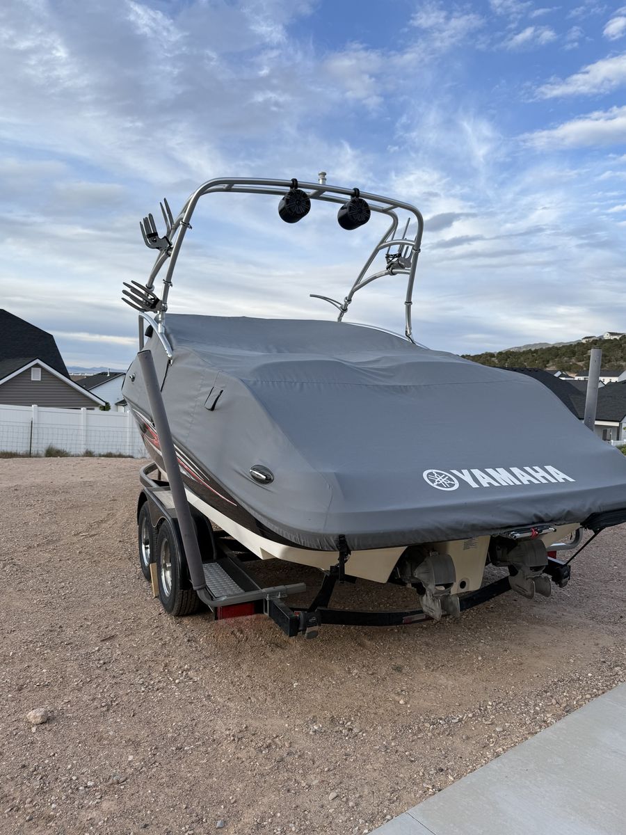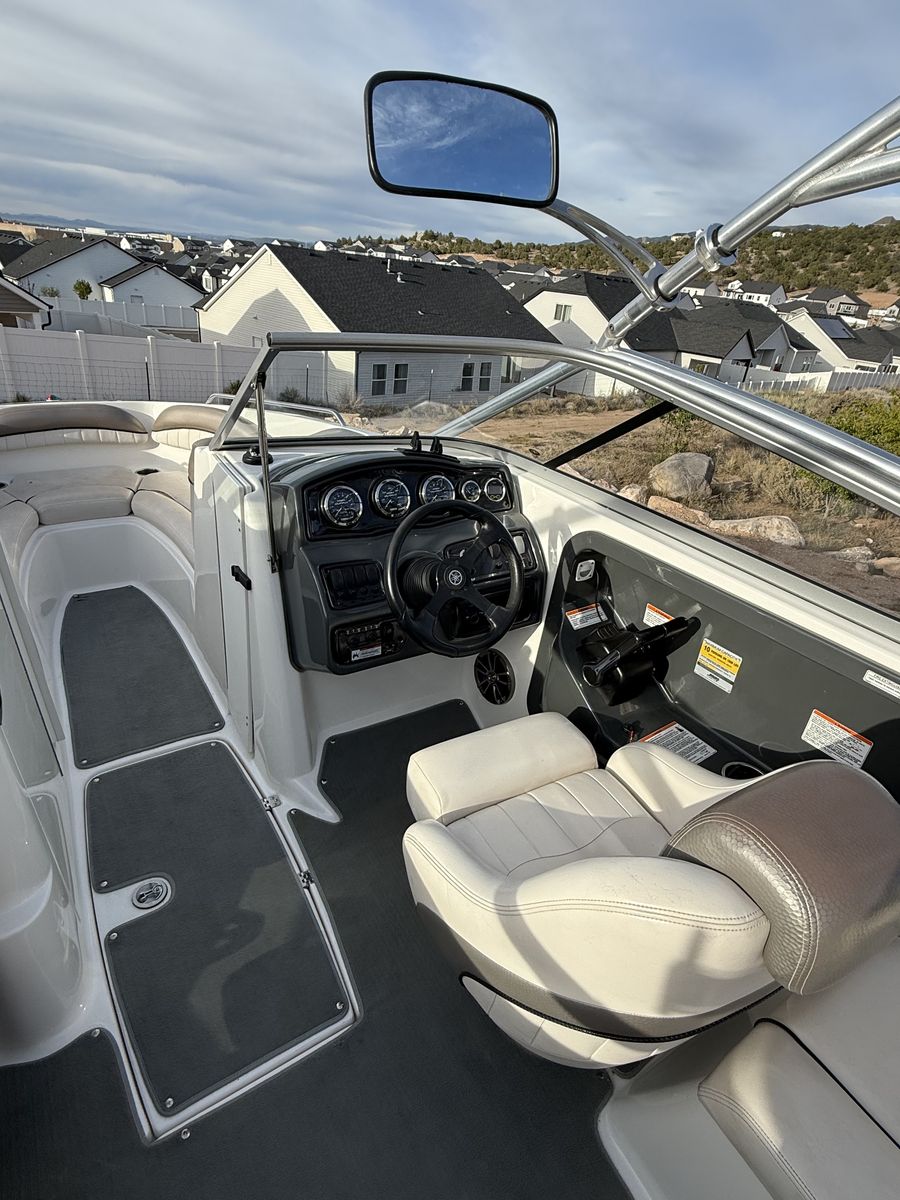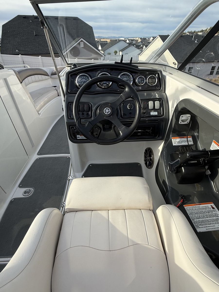 This 2007 Yamaha AR230 HO is a perfect all-around family boat. It is powered by twin Yamaha High Output jet engines (approx. 320 HP combined) which help with strong acceleration, smooth handling, and added safety with no exposed prop. This boat comfortably seats up to 10 passengers between the wraparound cockpit seating, bow seating, and a large rear swim platform for easy water access. Some key things to note are: