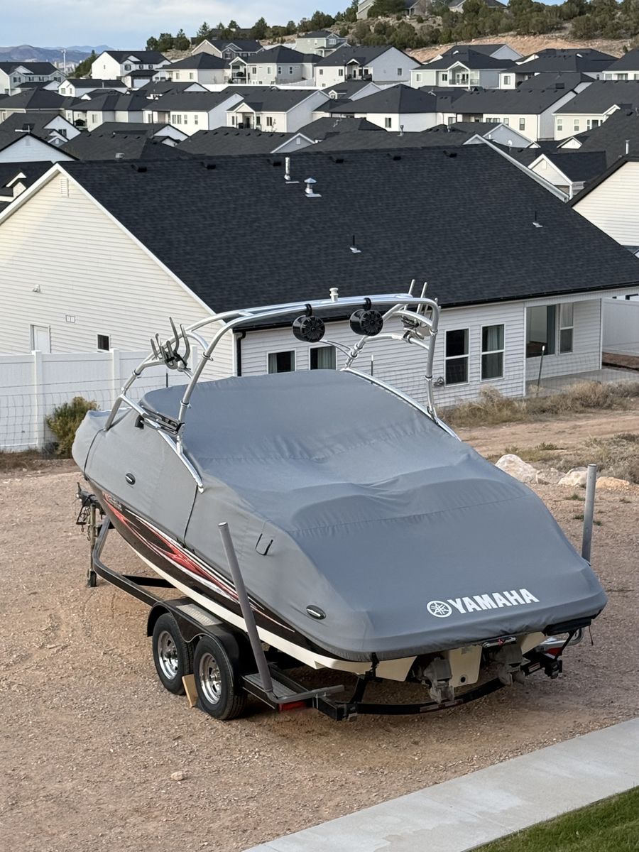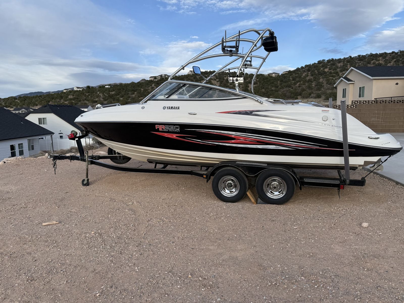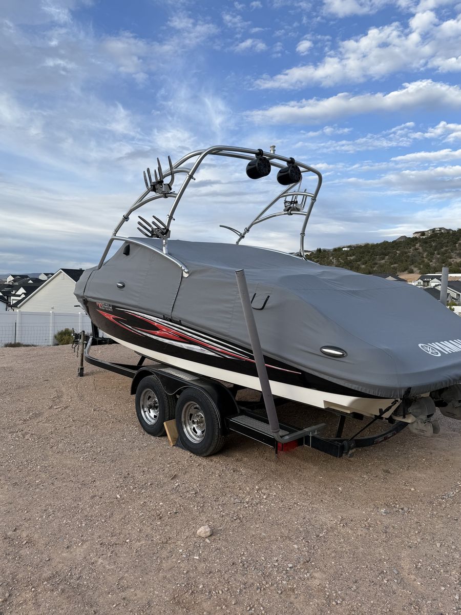 This 2007 Yamaha AR230 HO is a perfect all-around family boat. It is powered by twin Yamaha High Output jet engines (approx. 320 HP combined) which help with strong acceleration, smooth handling, and added safety with no exposed prop. This boat comfortably seats up to 10 passengers between the wraparound cockpit seating, bow seating, and a large rear swim platform for easy water access. Some key things to note are: