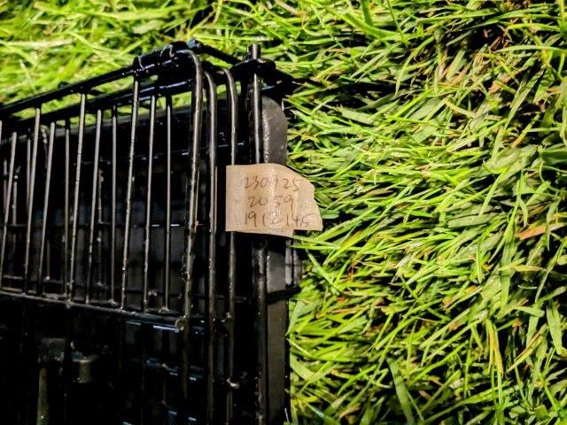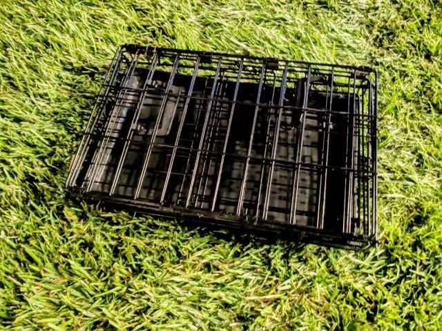 Small Wire Dog Crate. Single Doors. Fits Chihuahua, Pomeranian. Collapsible design and handle for easy storage and transport. Comes with plastic tray. Good condition and clean. Dimensions: 19 in. x 12 in. x 15 in