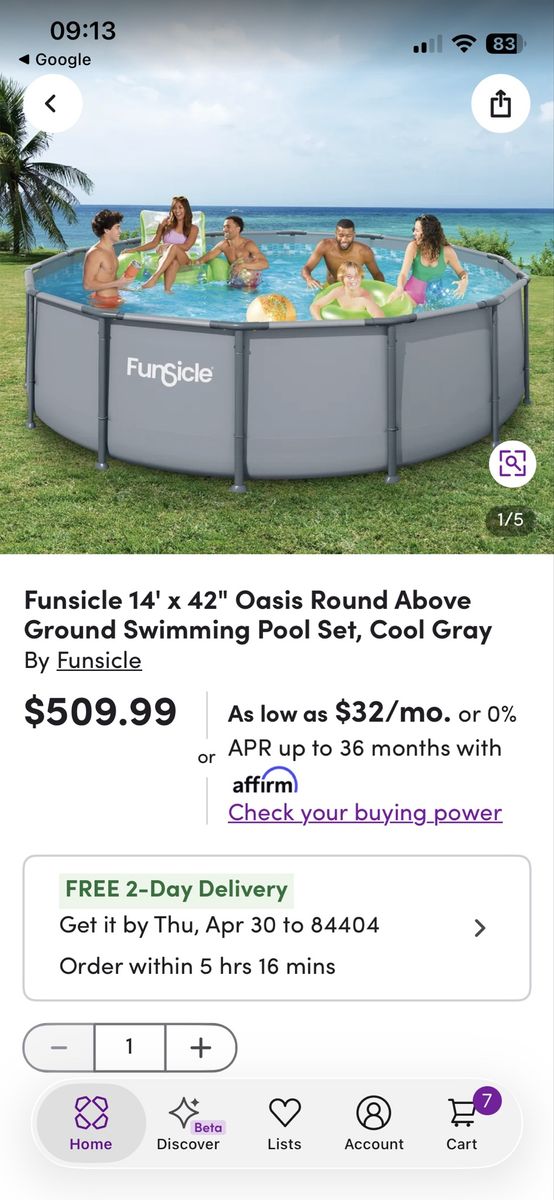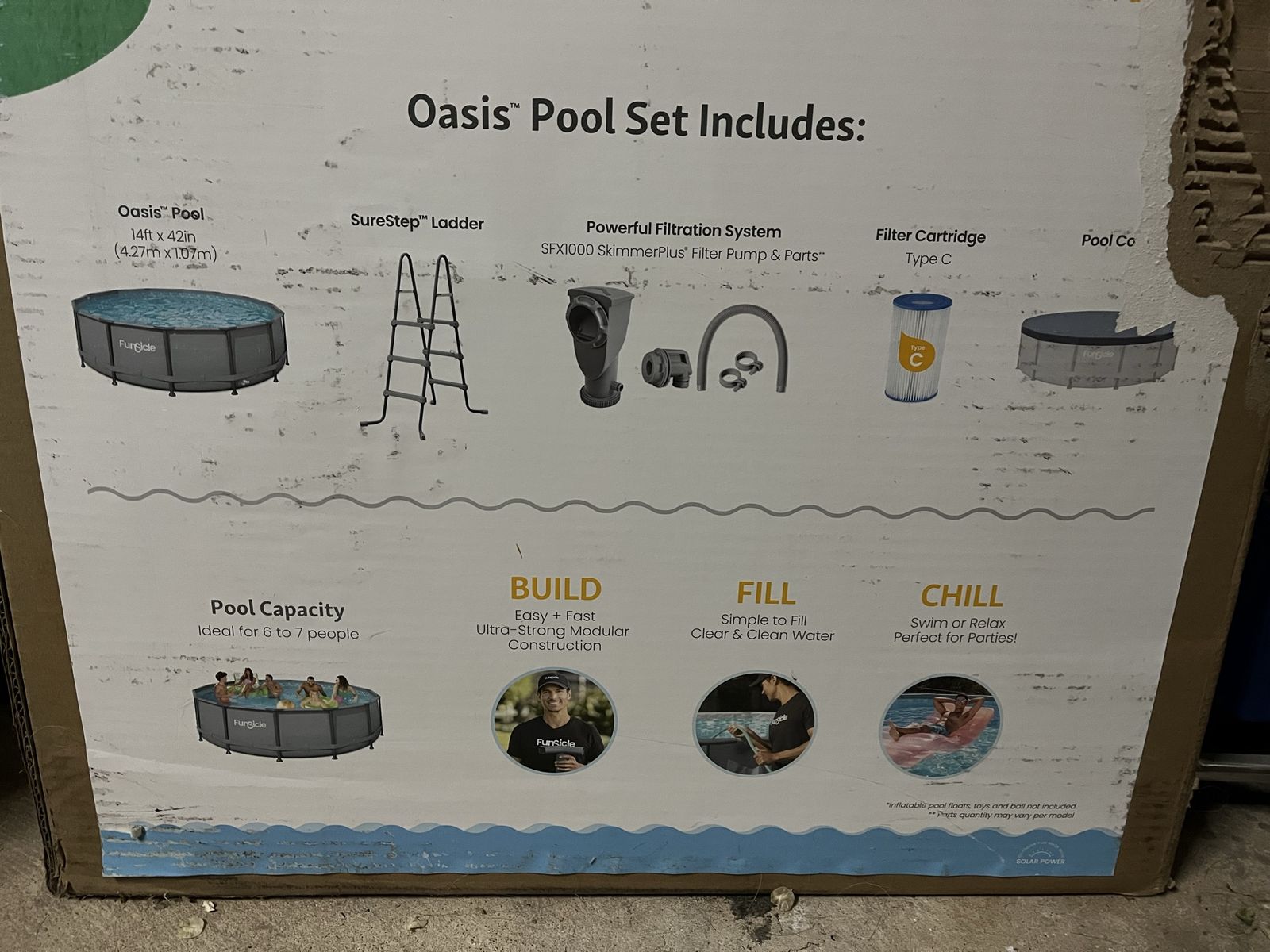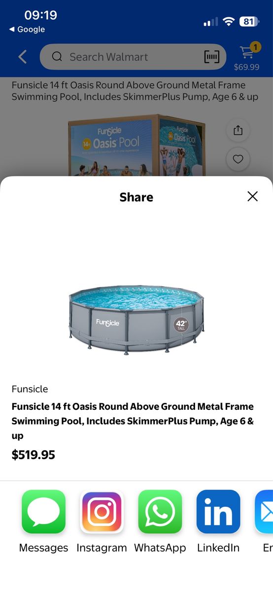VenmoHi. You are looking at a brand new in box Funsicle Oasis above ground pool. It’s 14 feet across by 42 inches tall. This set includes a ladder, filtration system, cartridge, cover. Moved it from my old house and my new rental doesn’t allow pools. This retails for around $500. Asking 350 OBO. No lowball offers please. I’ve included pictures and prices at leading retailer stores. I also have a ton of other pool related items that are new and used. A thermometer, chemicals, filters, floats, life jackets, etc. Text is best. Cash or Venmo only. I do not deliver. Thank you for your time. See my other stuff.