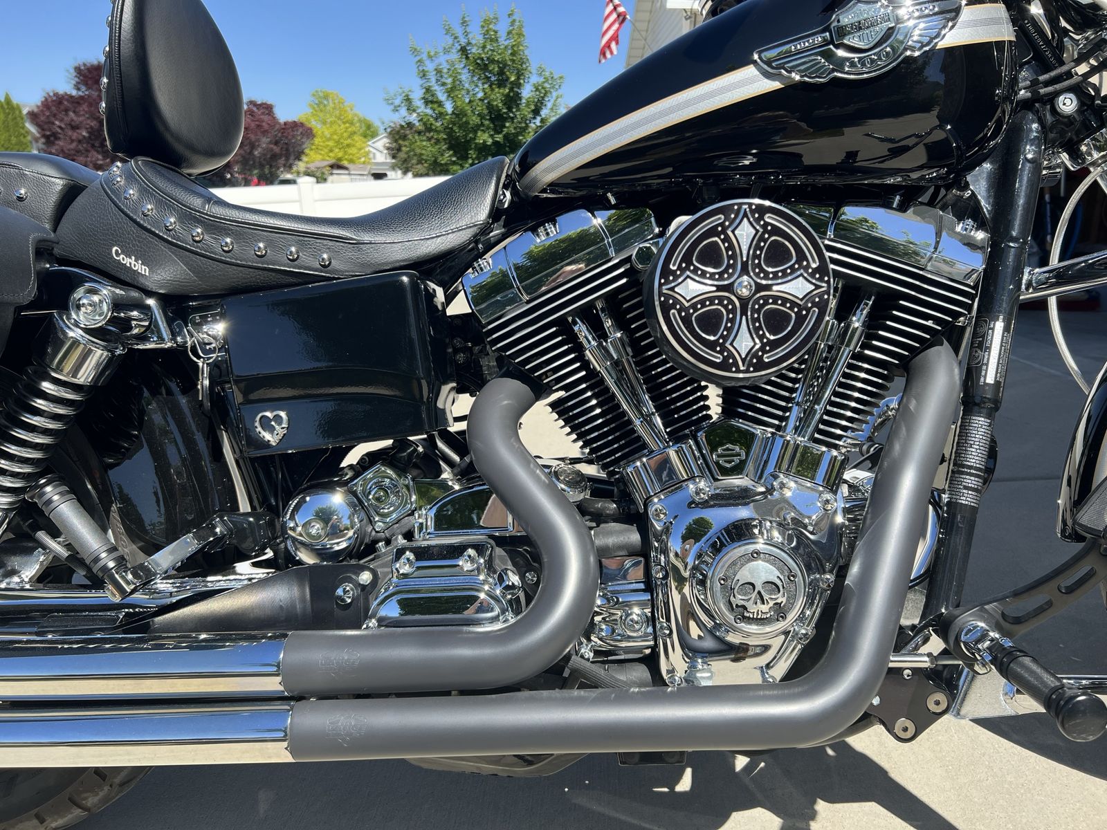 This is a 1450cc, five speed transmission, carbureted engine, anniversary edition Lowrider. There are 1,790 miles on new tires and 168 miles on new battery and oil change. Numerous chrome accessories including 6” pullback handlebars, Kurakyn trigger levers, PM grips, LED headlight, forward controls, chrome fork sliders, engine guard, highway pegs, and Corbin seat. The saddlebags are rigid with custom inner linings. Purchase includes some OEM parts, Lone Star T-bags, battery tender, and bike cover.
