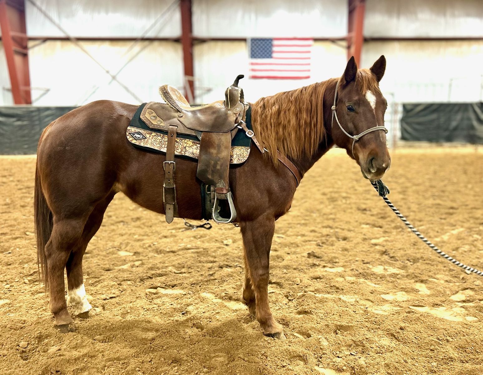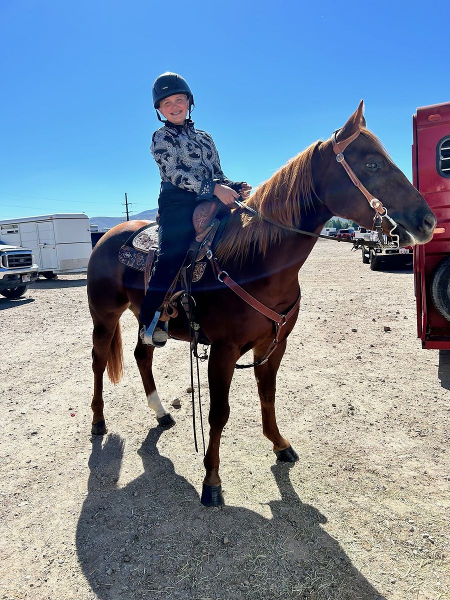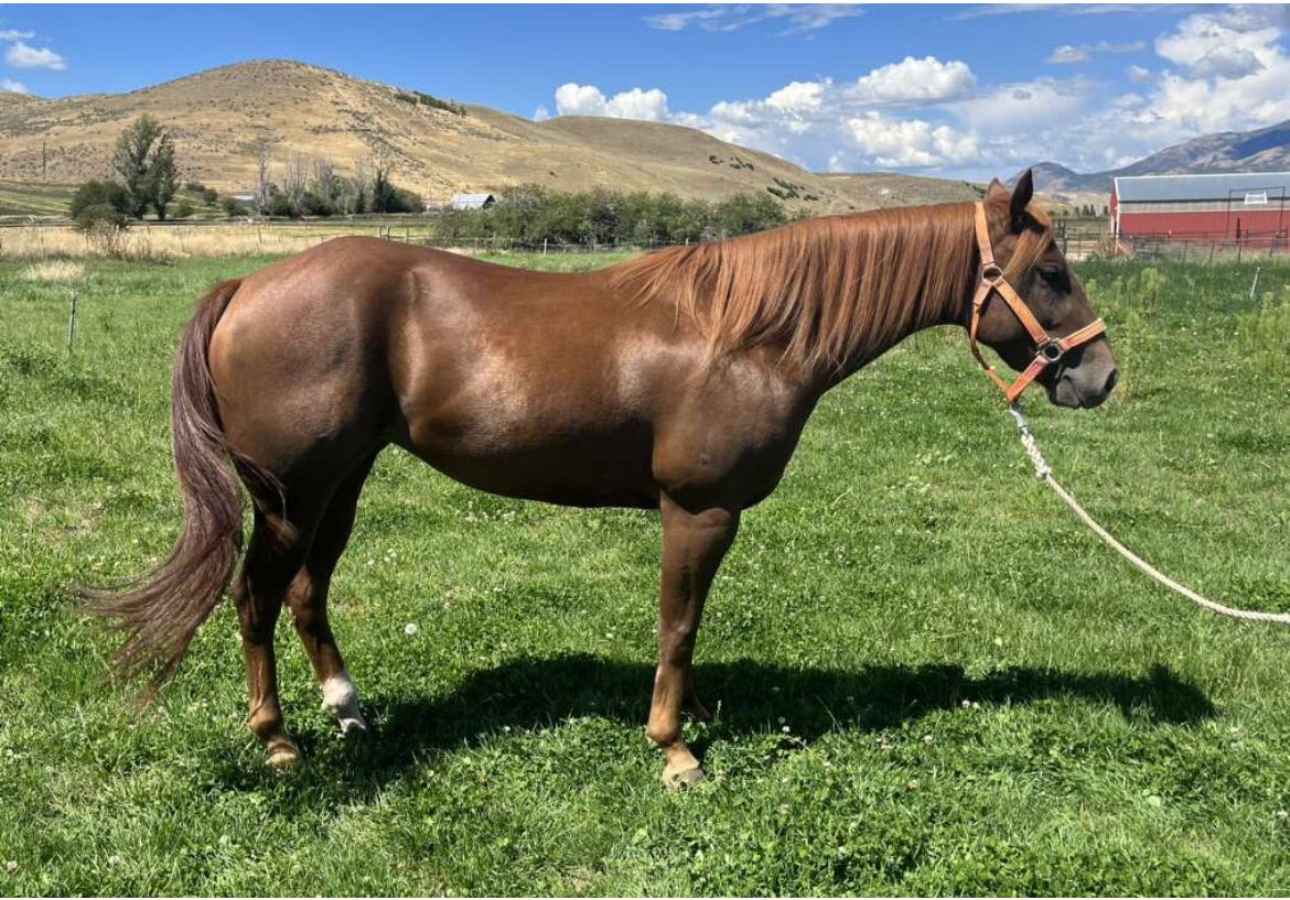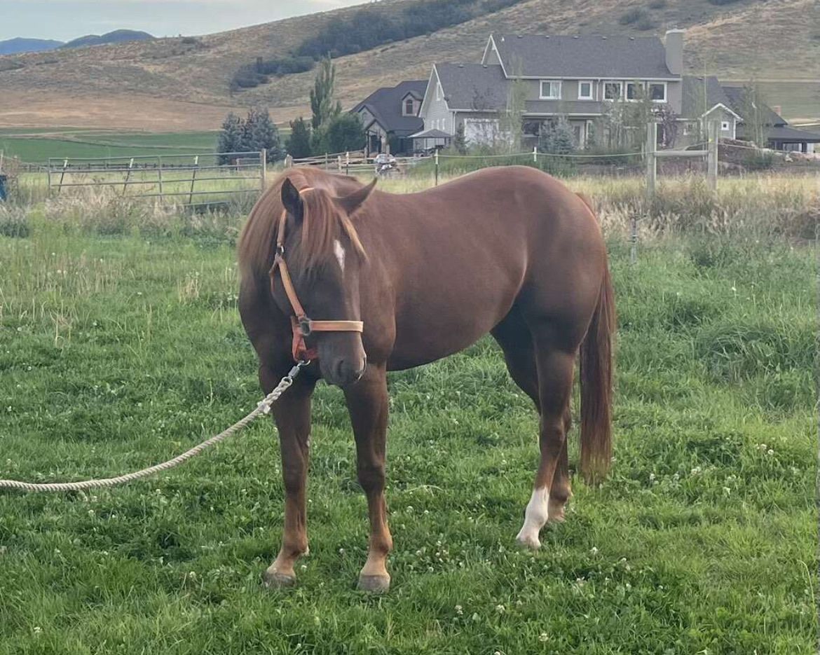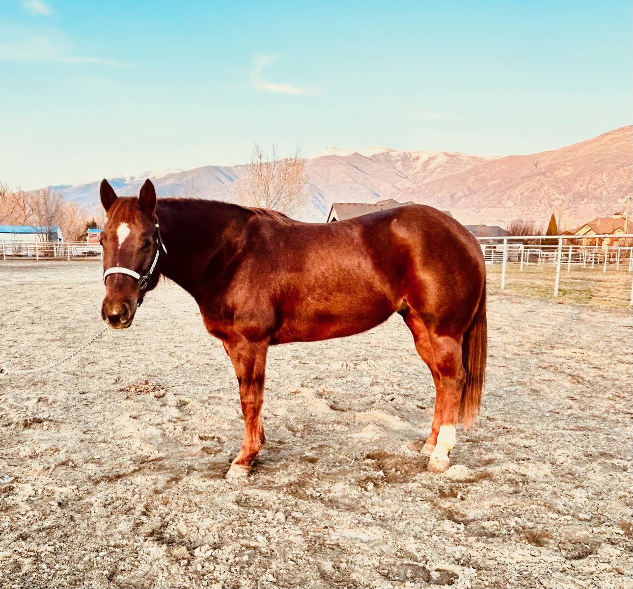 Sweet little 7 year mare, well bred, 14 hands, and perfect for your next all-around versatility or 4H horse. She was started by Mac Weaver, collects well, trail rides and crosses dead fall and water, can even run great poles and barrels, though she prefers slow work. Gets her leads, can counter canter, Beautiful stop! Not quite ready for a novice rider, as she’s athletic and young, and can occasionally test her rider- but nothing dangerous. Just checking who is in charge- very occasionally a little kick out. No real buck or rear at all. She gets so much better every time you ride her/ she’s just getting to know who is boss. Hauled extensively all fall an handles stalls and warm up pens well. Super willing and smart- and becoming a “jack of all trades”. She is great to shoe, hauls quiet, isn’t mareish in a herd, usually bottom of the pecking order. She is respectful on the ground, ties well and quiet, great to bathe. Is up-to-date on vaccinations, wormer, and had her teeth floated in the last year. She is ready for her next family and to be some handy kids 4H dream horse. Text is best- I have lots of videos. Her owners are very motivated to sell, but want to make sure it’s the right fit and finds a great home. $12,500 o.b.o Selling for a client- but she is onsite and we have an outdoor arena you can come try her out. Located in Farmington. Reach me at (385) 381-9437 for more information!