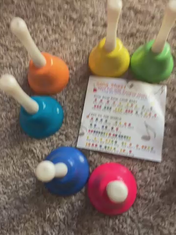 Gently used, no original box. Includes: Full 8-note diatonic scale (C major) and original color-coded song sheet ("London Bridge" and "Lullaby"). Features: Metal bells with plastic handles, each tuned to a specific note. Great educational tool for toddlers or music beginners. Payment: Cash or Venmo preferred.