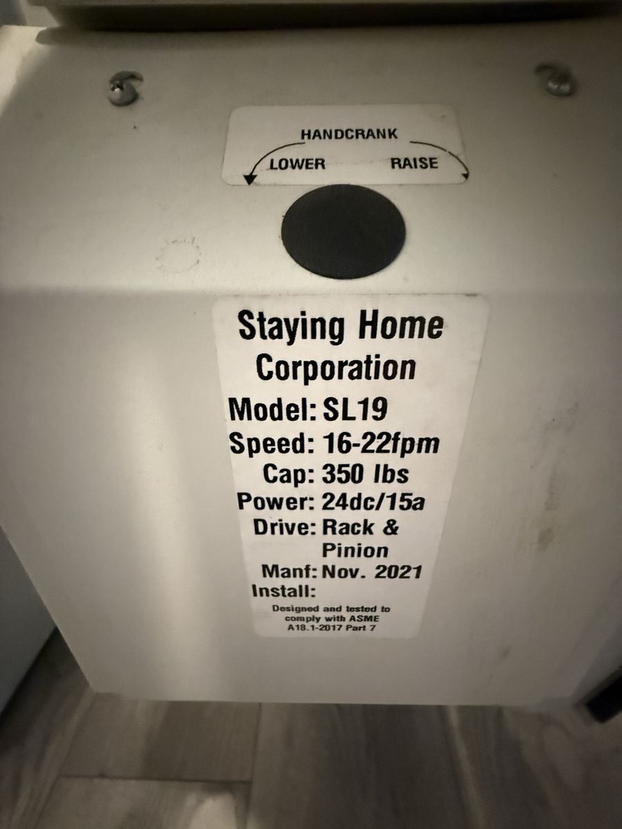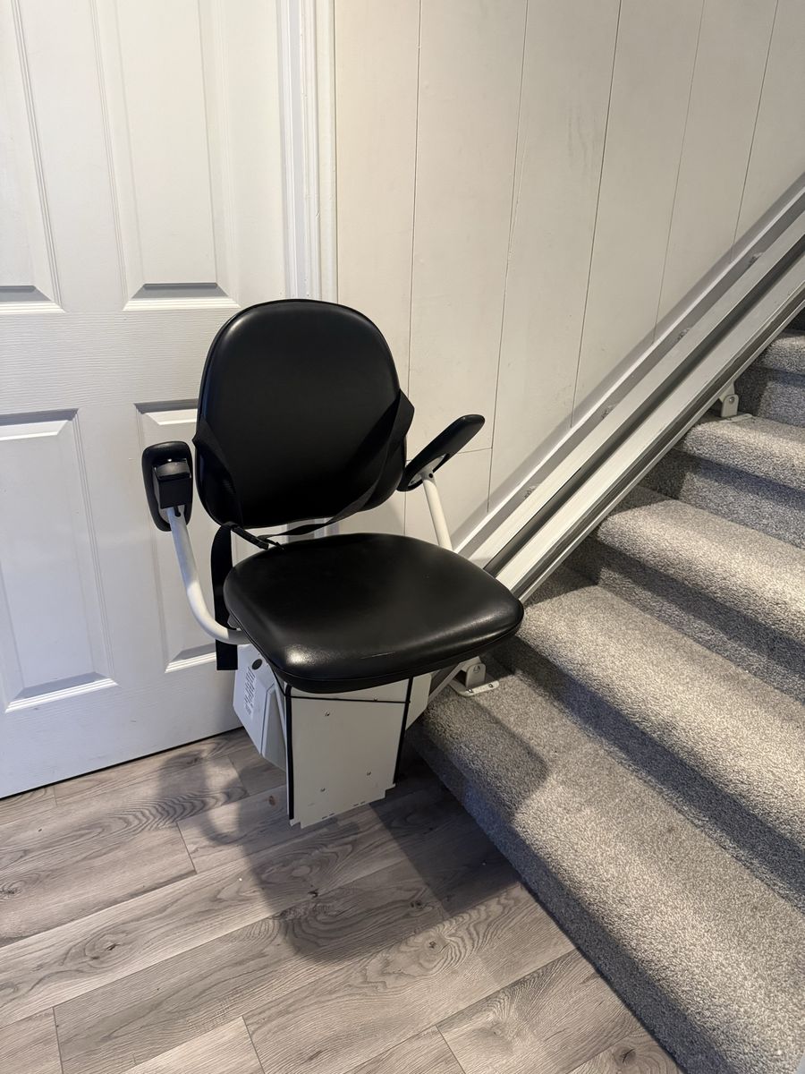 ApplePayThis is a killer deal for someone in need of a stairlift. We are moving to Hawaii and we need this gone by this Saturday so you are in luck! Staying Home Corporation Model SL19 Mobility Stair Lift. Complete package with motor, chair, foot rest, over 10ft of rail (approx 10' 4"), 1 remote control. Man, easy to install and in good working order. It has a built in battery, and a 350lb capacity.
