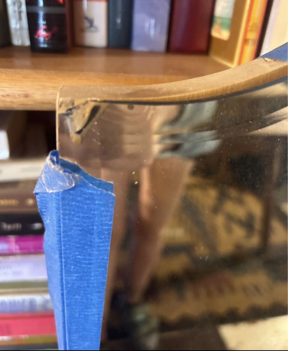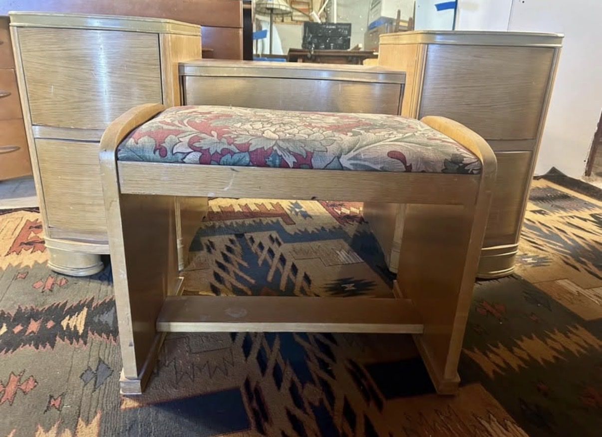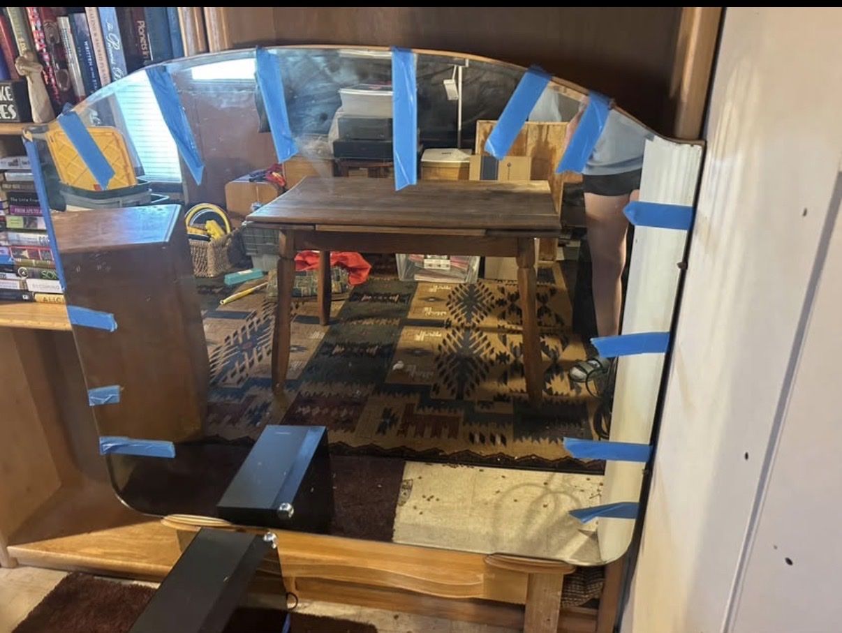 PayPalSuper cool vintage vanity. Could be refinished or used as is. Mirror has a small chipped corner but otherwise in great shape. Two of the brackets that hold the mirror are broken. I have tape holding the mirror for moving purposes. The mirror will stay in place even though two brackets are broken. Everything is completely functional and the drawers slide freely. Beautiful statement piece.