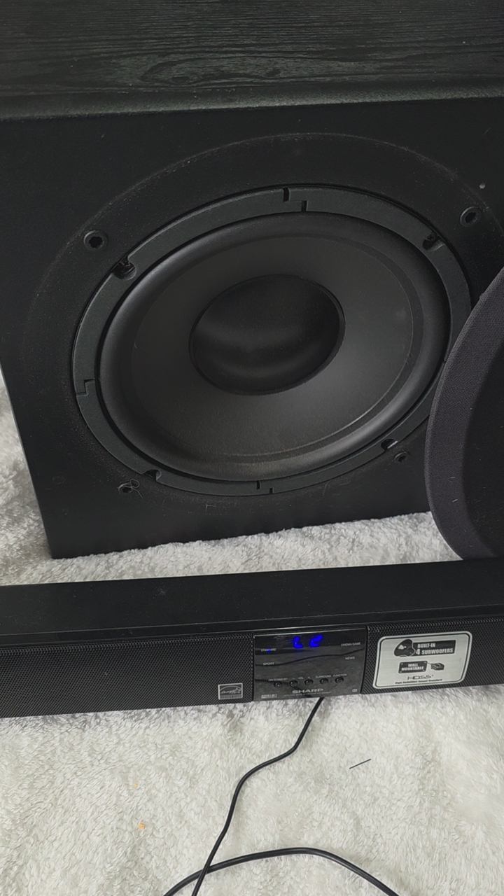 PayPalSharp Sound Bar w/ remote Selling seperate . The sub in the picture and video is a Polk 10" subwoofer and the Sharp sound bar w/ remote but would rather sell together as they sound great together. Come by any time or will deliver for a bit extra