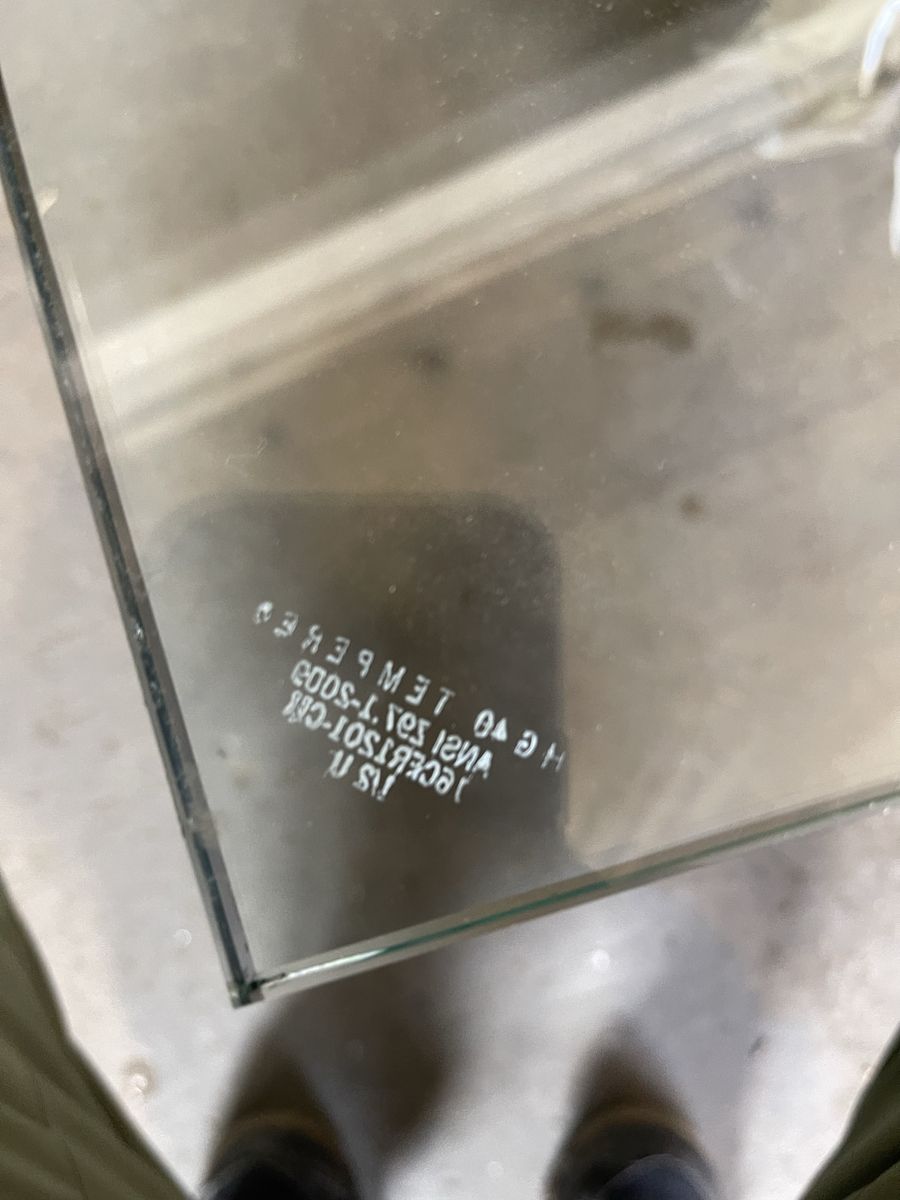 Tempered Safety Glass: Includes the permanent laser-etched certification in the corner (ANSI Z97.1). This confirms the glass is heat-treated for maximum strength and safety.