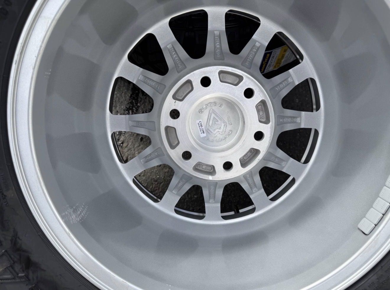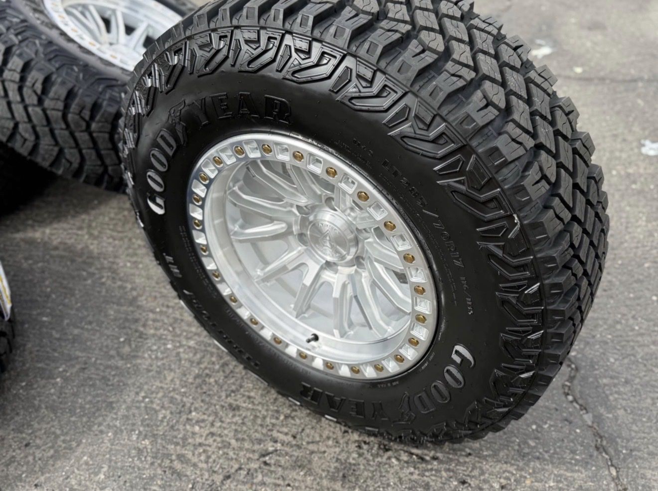 New 285/70r17 Goodyear Territory MT tires mounted and balanced on new Silver Arena Mission wheels. 17x9 00et offset. 6x135 bolt pattern. These fit 2004 and newer Ford F-150 and expedition.
