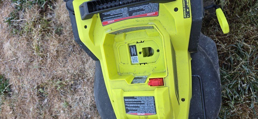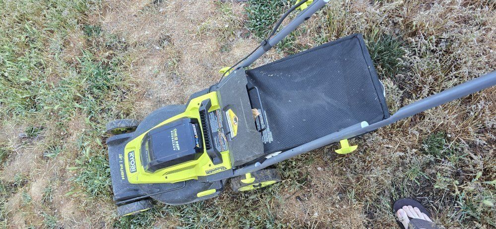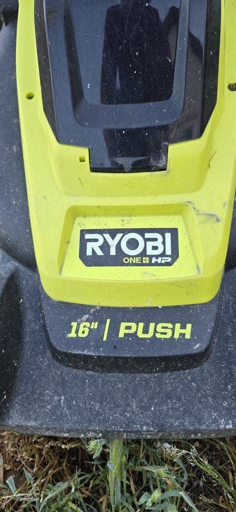GooglePay16 inch push mower. Runs on Ryobi 18V one+ batteries (not included). Has a bag and the mulching plug. Used for a year.