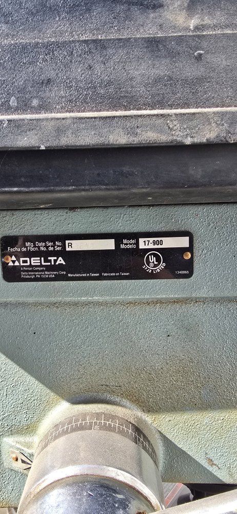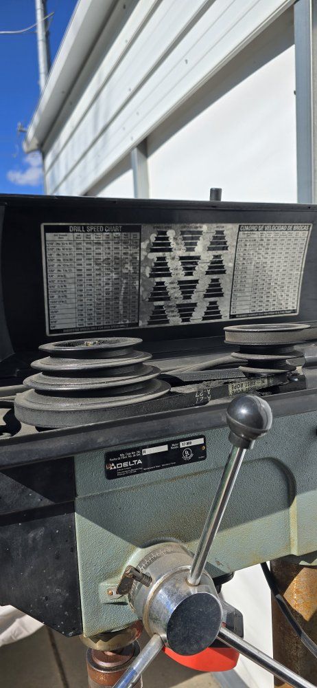 Delta 17-900 Drill Press, 16-1/2 inch floor-standing drill press, 3/4 HP motor, 12 speeds ( 250–3000 RPM), and a #2 Morse Taper. Works great.